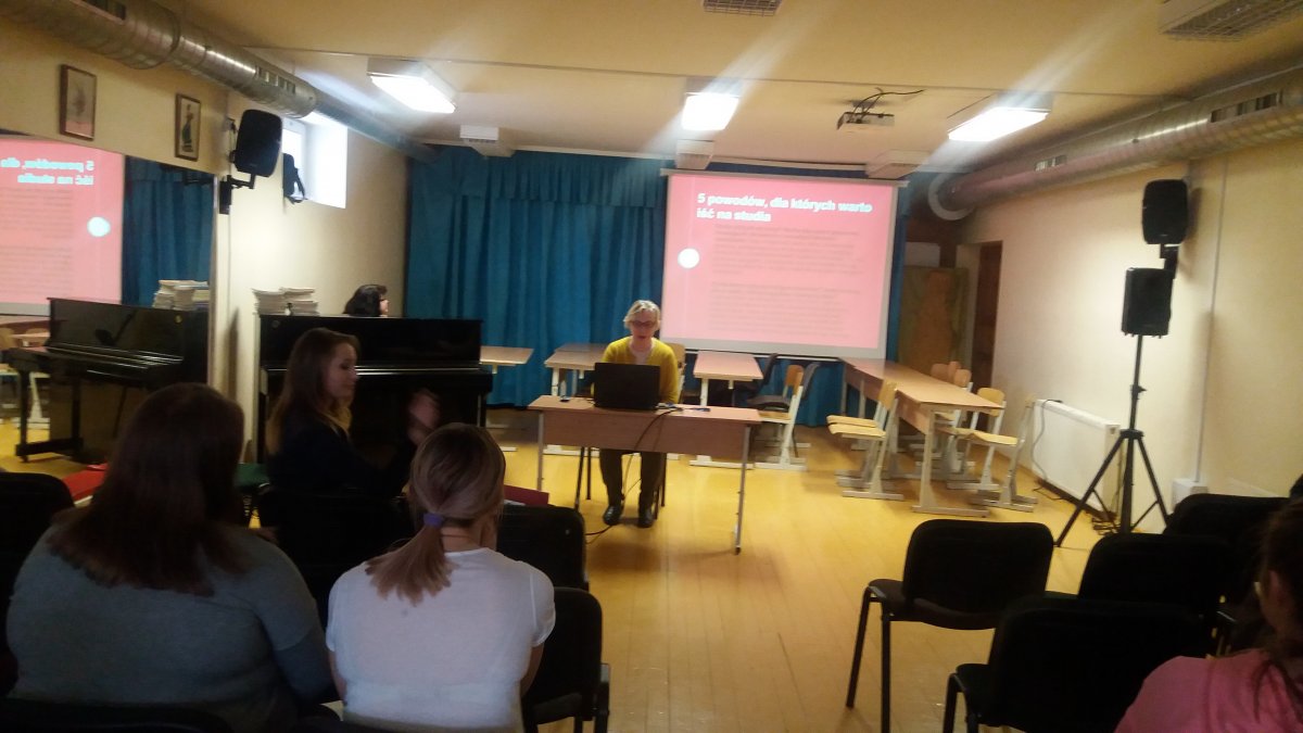 Šių metų gruodžio 11 d. mūsų gimnazijos GIV kl. mokiniai susitiko su Balstogės universiteto filialo Vilniuje atstovais. Susitikimo metu mokiniai buvo supažindinti su studijų programomis, konkursinį balą lemiančiais egzaminais, stipendijomis, galimybėmis įsidarbinti. Su mokiniais bendravo studentės, kurios šiuo metu studijuoja šiame universitete.