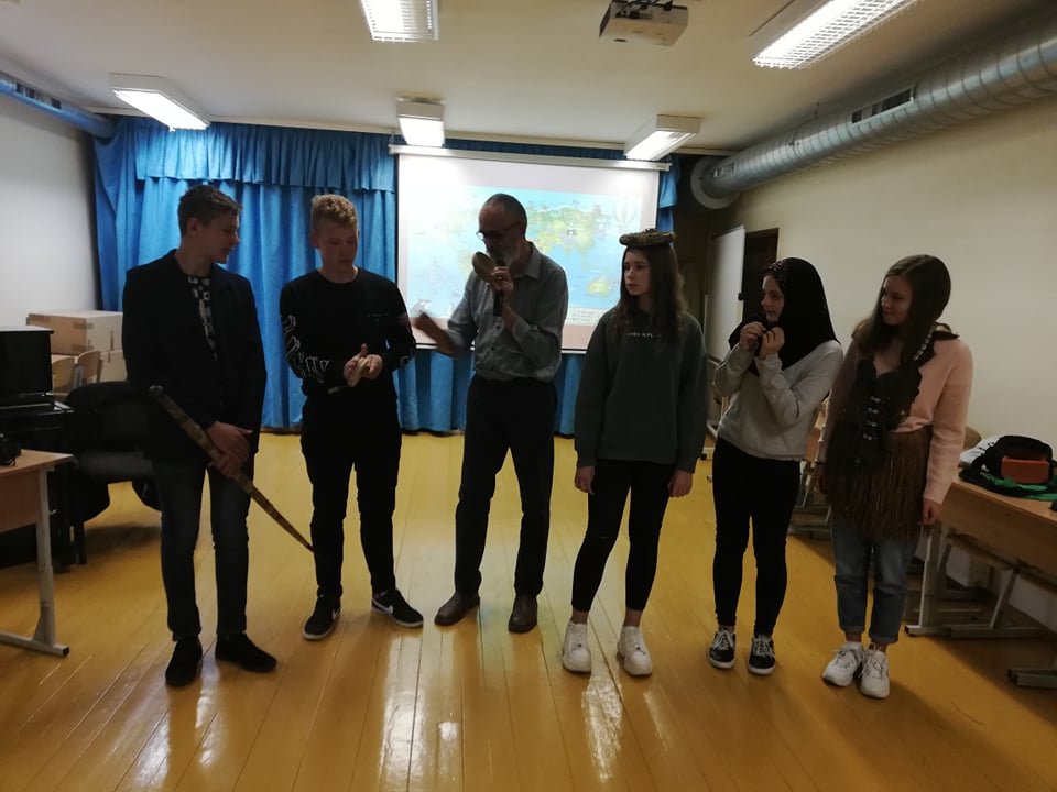 Rugsėjo 25 dieną, mūsų gimnazijoje lankėsi keliautojas Boleslavas Grabovskis, kuris yra aplankęs visus pasaulio žemynus, išskyrus Antarktidą. Šį kartą keliautojas dalijosi savo įspūdžiais iš kelionių po dvi Afrikos valstybes – Etiopiją ir Keniją. Mokiniai sužinojo, kaip atrodo kasdieninis įvairių Afrikos genčių gyvenimas, pamatė daug Afrikos buityje naudojamų daiktų, pamatavo afrikietiškus drabužius, pažaidė afrikietišku kamuoliu pagamintu iš banano lapų, grojo afrikietišku būgnu ir pan.