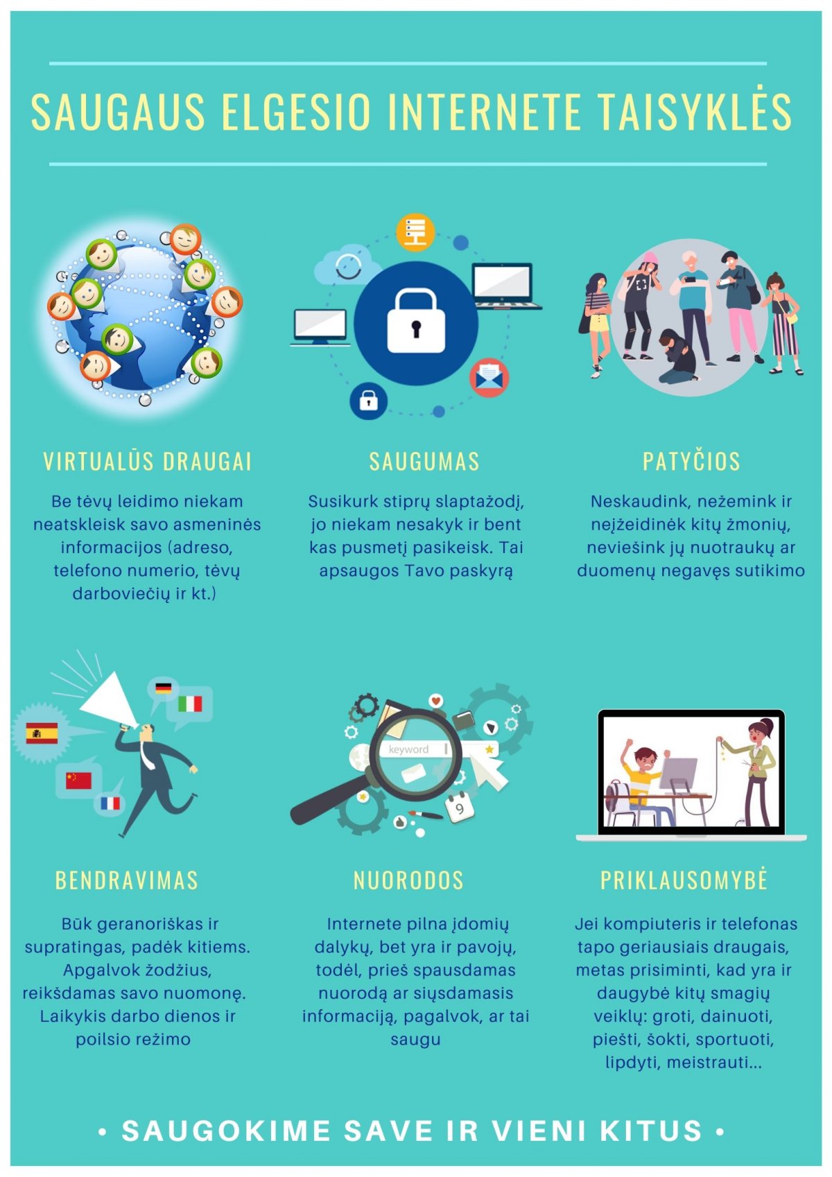2021 m. vasario 8-13 dienomis mūsų gimnazijoje, kaip ir visoje Lietuvoje jau aštuonioliktą kartą bus minima Saugesnio interneto savaitė. Šiais metais Saugesnio interneto dienai visame pasaulyje skirtas šūkis „Kurkime geresnį internetą kartu!“ kviečia interneto naudotojus, ypač vaikus, atkreipti dėmesį į interneto turinį ir prisidėti prie saugesnio interneto kūrimo. Eišiškių gimnazijoje įvairios šviečiamosios saugesnio interneto veiklos: edukacinės pamokėlės, viktorinos, mokomųjų siužetų peržiūra bei diskusijos vyks visą savaitę. Jų tikslas – atkreipti dėmesį į aktualius skaitmeninius iššūkius, skatinti saugesnį naudojimąsi internetu ir skaitmeninėmis technologijomis.
