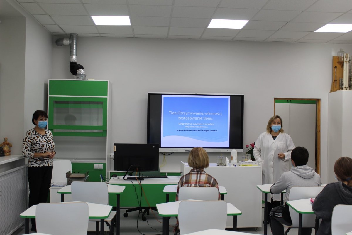 2021m. spalio 7 dieną 8a klasėje įvyko integruota chemijos ir lietuvių kalbos pamoka tema „Deguonis: jo gavimas ir savybės. Deguonies taikymas“.