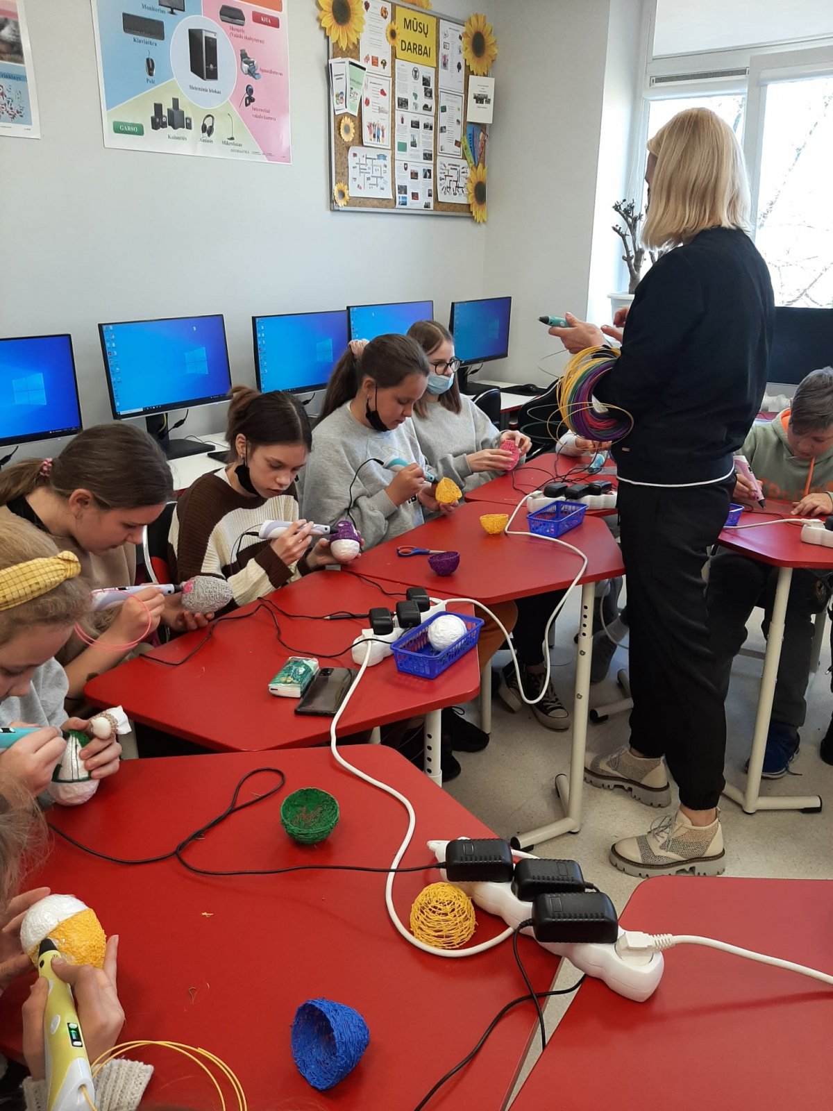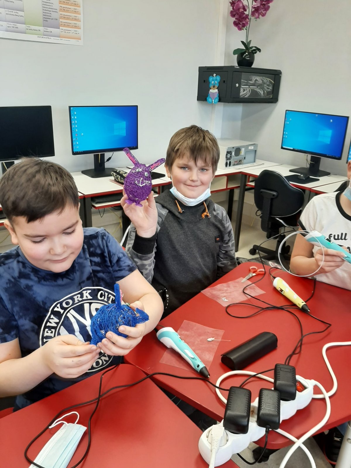 Kovo 28 d. Eišiškių gimnazijos 5, 6, 8- tų klasių mokiniai informacinių technologijų pamokose vykusioje edukacijoje „3D rašiklis – kūrybiškiems mokiniams“ susipažino su 3D rašiklių technologija. 3D rašiklis – tai instrumentas, gebantis piešti ore arba ant kokio nors paviršiaus plastiko gijomis. Kiekvienas mokinys turėjo galimybę pasidaryti darbelį ir jį papuošti spalvotais plastikiniais siūlais, kurie yra visiškai saugūs, netoksiški ir neskleidžia nuodingų dūmų. Mokiniai su didžiausiu susidomėjimu gamino Velykinį 3D margutį arba įvairias erdvines konstrukcijas, susipažino su naudojamomis medžiagomis ir techninėmis galimybėmis. Tai buvo puikiai praleistas laikas su naujais iššūkiais, patirtimis ir atradimais, o pamokai pasibaigus visi džiaugėsi kruopščiai atliktais darbeliais.