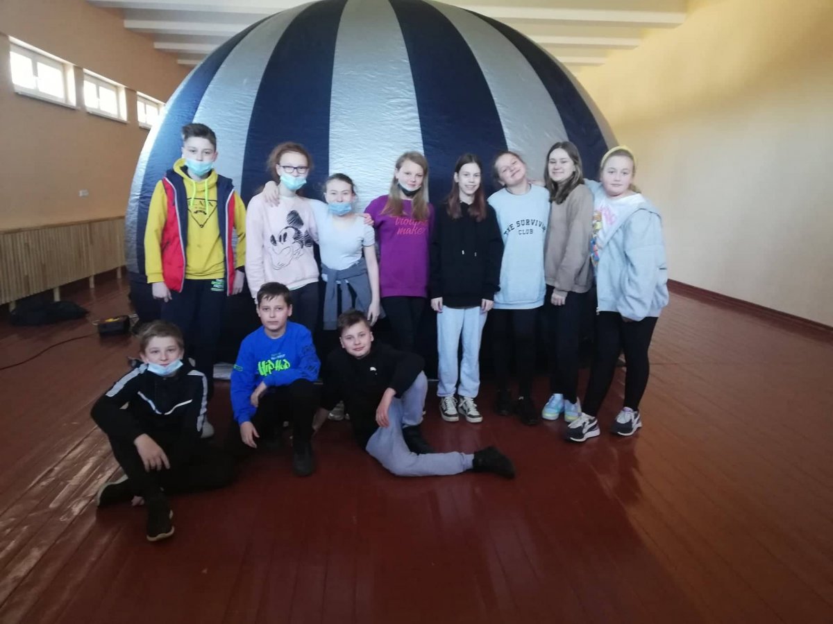Ketvirtadienį, balandžio 30 dieną, mūsų gimnazijos mokiniai dalyvavo netradicinėse geografijos pamokose, kurios vyko sferiniame kine. Sferinis kinas – įdomi netradicinio ugdymo pamoka ir naudinga pramoga, kurios metu ne tik mokaisi, bet ir pasijunti lyg tikras astronomas, galintis bendrauti su žvaigždėmis, planetomis. Per visą kupolą besisukantys vaizdai, krintančios žvaigždės sudaro labai tikrovišką reginį. Mokiniams buvo suteikta galimybė ne tik žiūrėti, bet ir pasijusti neįtikėtinų bei neapčiuopiamų įvykių dalyviais.