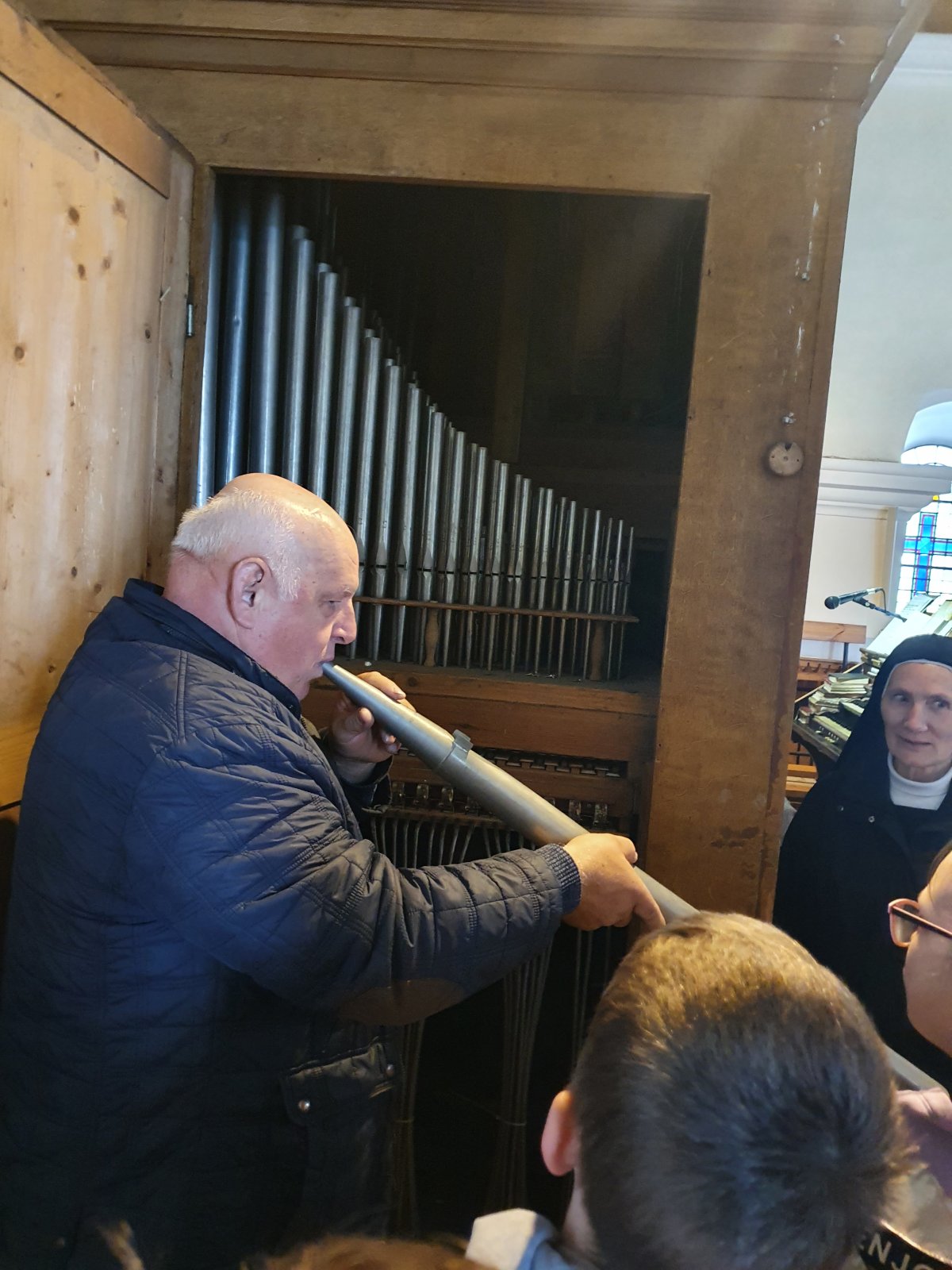 Gegužės 30 d. 4a klasės mokiniai dalyvavo netradicinėje , integruotoje pamokoje,, Susitikimas su instrumentų karaliumi- vargonais“.Mokiniai drauge su tikybos mokytoja Ana Voitonis ir pradinių klasių mokytoja Jadvyga Leonovič Eišiškių Kristaus Žengimo į dangų bažnyčioje praplėtė savo žinias . Tikybos mokytoja Ana Voitonis priminė dalyvavusiems bažnyčios istoriją, papasakojo apie sakralinius elementus, liturginius giedojimus. Mokiniai turėjo galimybę iš arti susipažinti su tuo , kas jiems visada atrodė nepasiekiama ir paslaptinga. Eišiškių vargonininkas Audes Leonovič papasakojo apie vargonų istoriją, jų veikimo principą , grojimo specifika bei sandarą. Kartu susipažino su vargonininko profesija. Patys mokiniai išdrįso pagroti šiuo didingu muzikos instrumentu, giedojo religines giesmes lydimi vargonų. Vaikai taip pat turėjo galimybę gyvai išgirsti vokiečių kompozitorių Bacho ,, Toccata and Fugue in D minor“ bei Mendelsono ,,Wedding march“. Šiuo susitikimu mokiniai liko labai sužavėti ir kupini nepamirštamų įspūdžių. Šią pamoką mokiniai ilgai prisimins.