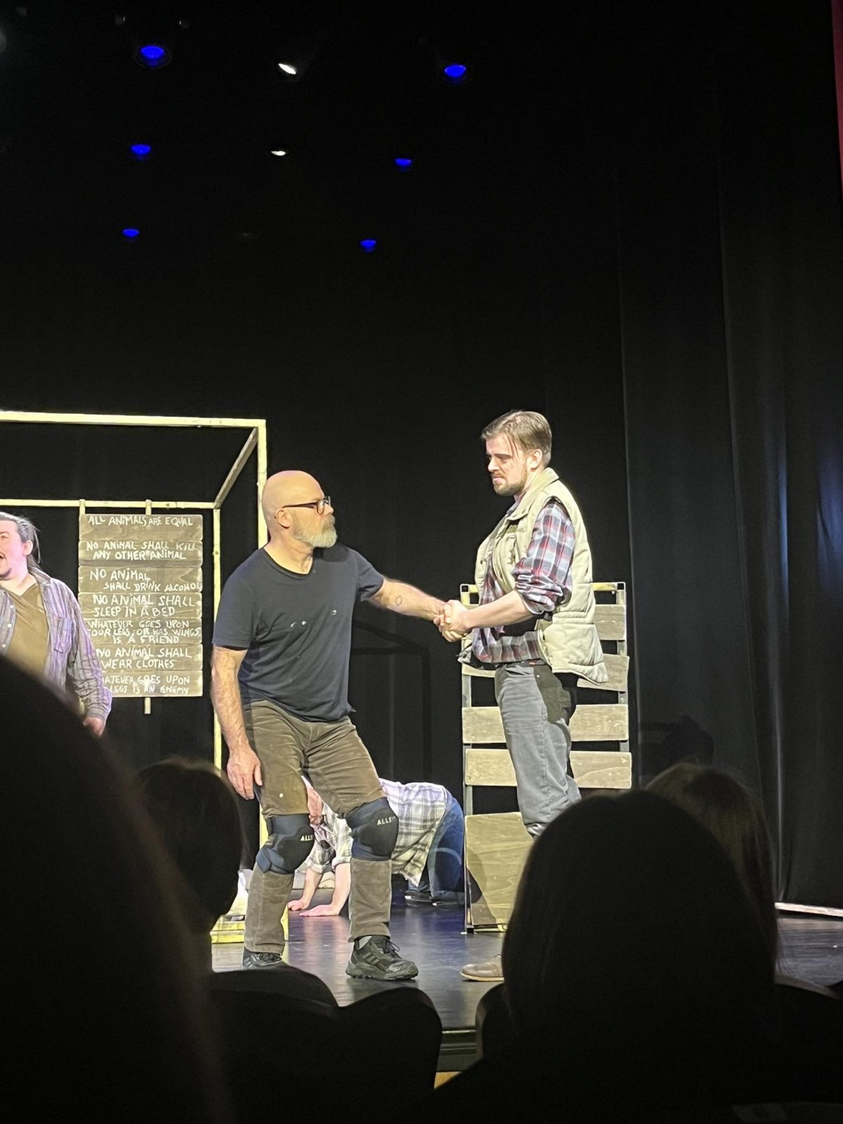 Kovo 29 d. anglų kalbos pamoka 8A mokiniams vyko netradicinėje aplinkoje Vilniuje. Mokiniai lankėsi American Drama Group Europe spektaklyje "Animal farm" ( liet. Gyvulių ūkis) - žinomiausia anglų rašytojo Džordžo Orvelo satyrinė tarybinio totalitarizmo alegorija. Spektaklis leido mokiniams susimąstyti apie laisvę, lygybę, tarpasmeninius santykius bei solidarumą.