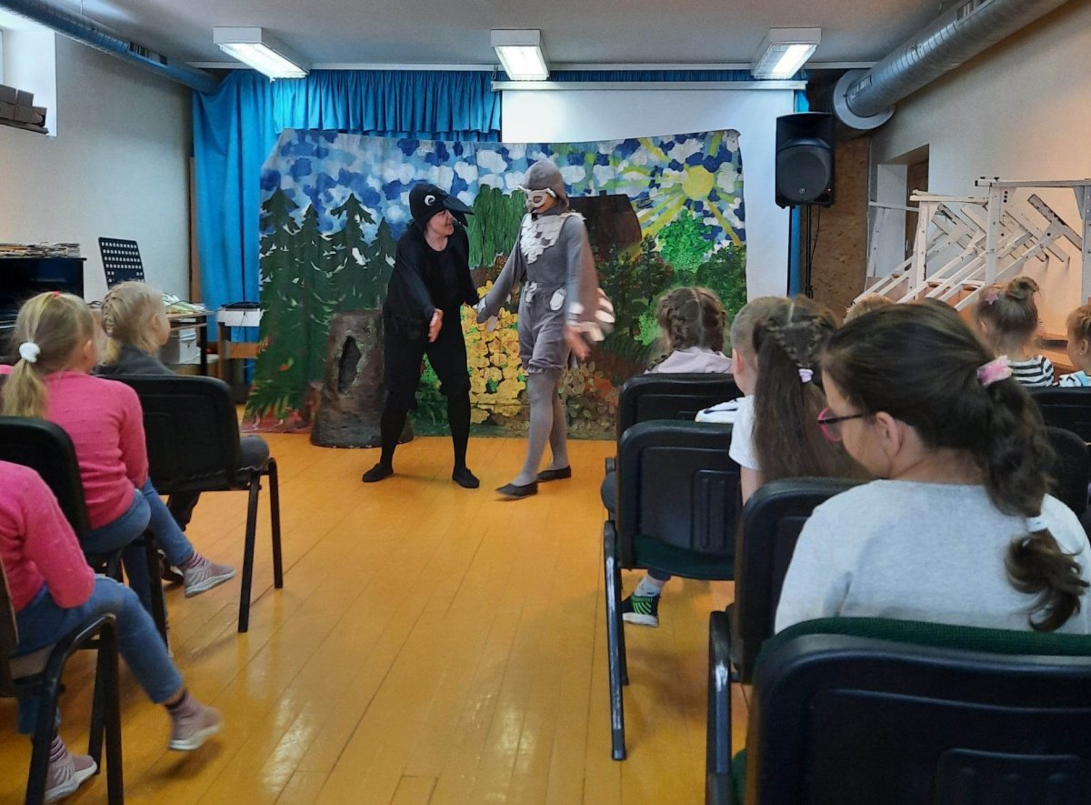 Kovo 7 dieną Eišiškių gimnazijos 1a, 1b ir 4a klasių mokinukai sulaukė svečių. Atvyko „Drakoniuko teatras“ ir atvežė spektaklį „Žvaigždės pelėdoms“.