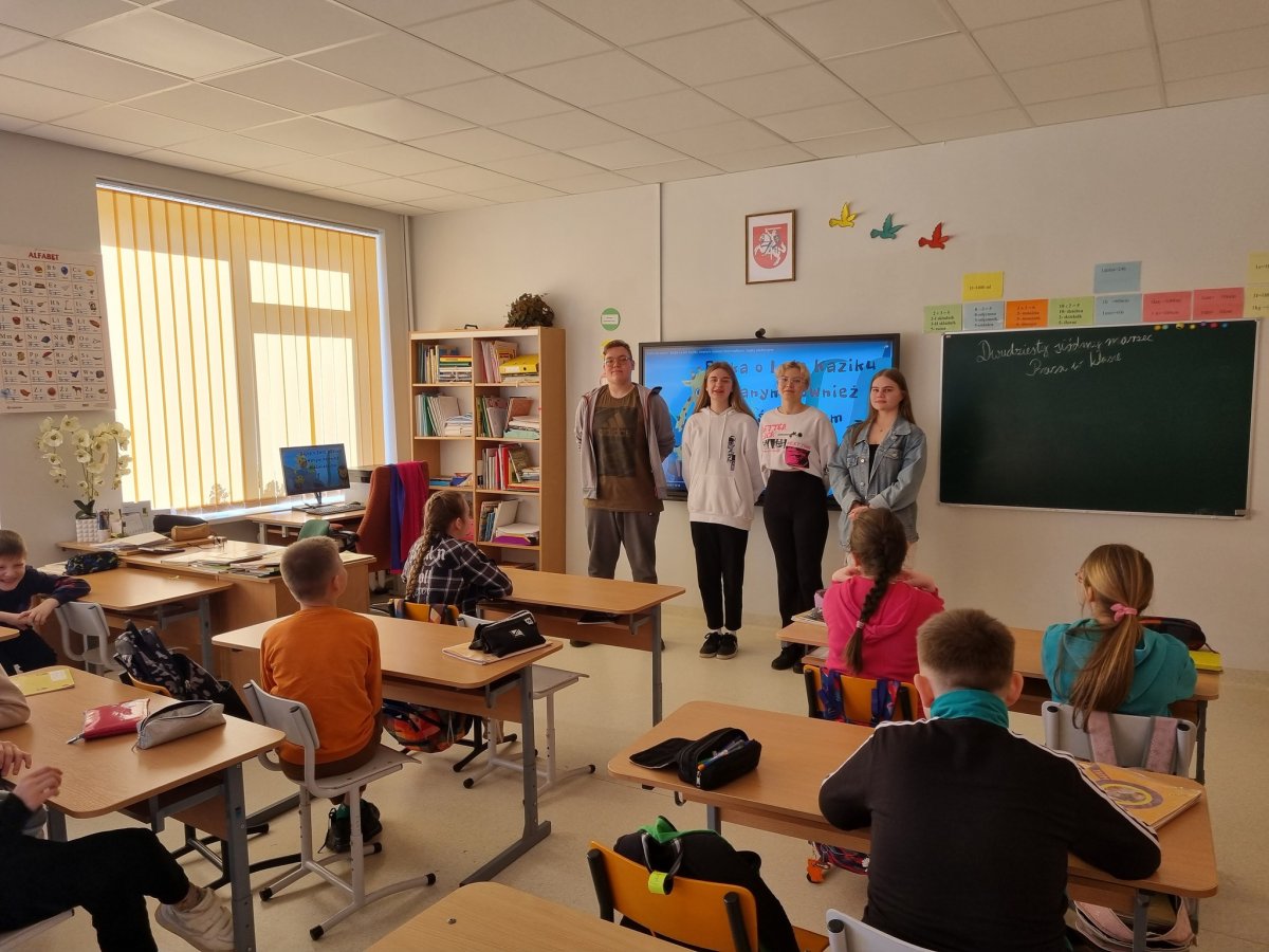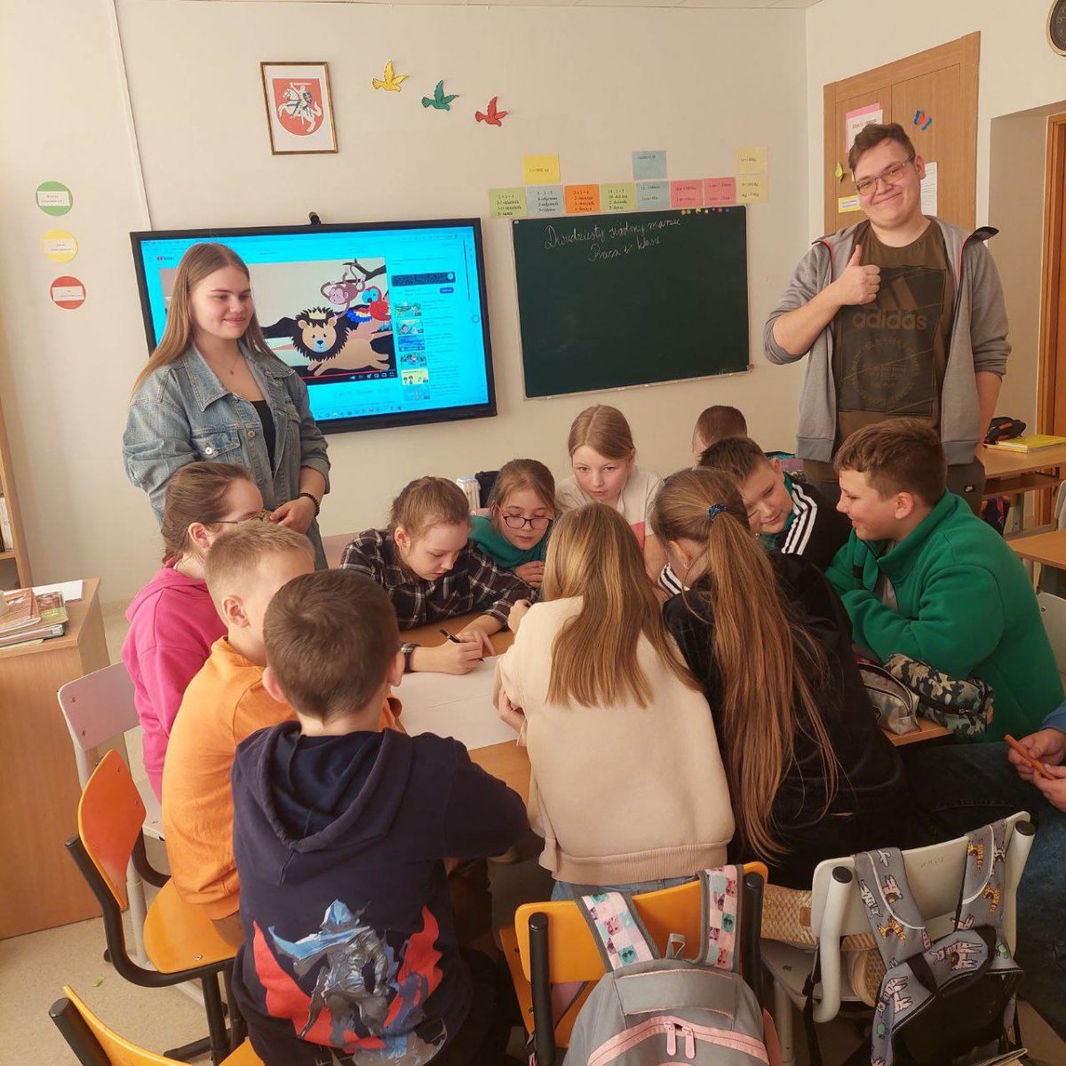 Visą kovo mėnesį mūsų gimnazijos mokiniai dalyvavo užsiėmimuose ,, Mes be patyčių gyvensime, vienas su kitu draugausime’’. Užsiėmimus vedė gimnazijos vyresnių klasių moksleiviai pradinių klasių draugams. Kartu žiūrėjo pamokantį filmuką apie draugus, kurie padeda vienas kitam, diskutavo, dalijosi mintimis apie draugystę, draugiškumą. Kiekviena klasė užsiėmimo pabaigoje piešė savo klasės portretą. Džiaugiamės, kad vaikai gana gerai atpažįsta savo jausmus, juos įvardija, žino gero bendravimo taisykles. Svarbiausias tikslas – ugdyti vaikų empatiją, norą padėti šalia esančiam draugui, gebėti priimti tinkamus sprendimus konfliktinėse situacijose, ugdyti vaikų gebėjimą ieškoti ir kreiptis pagalbos.