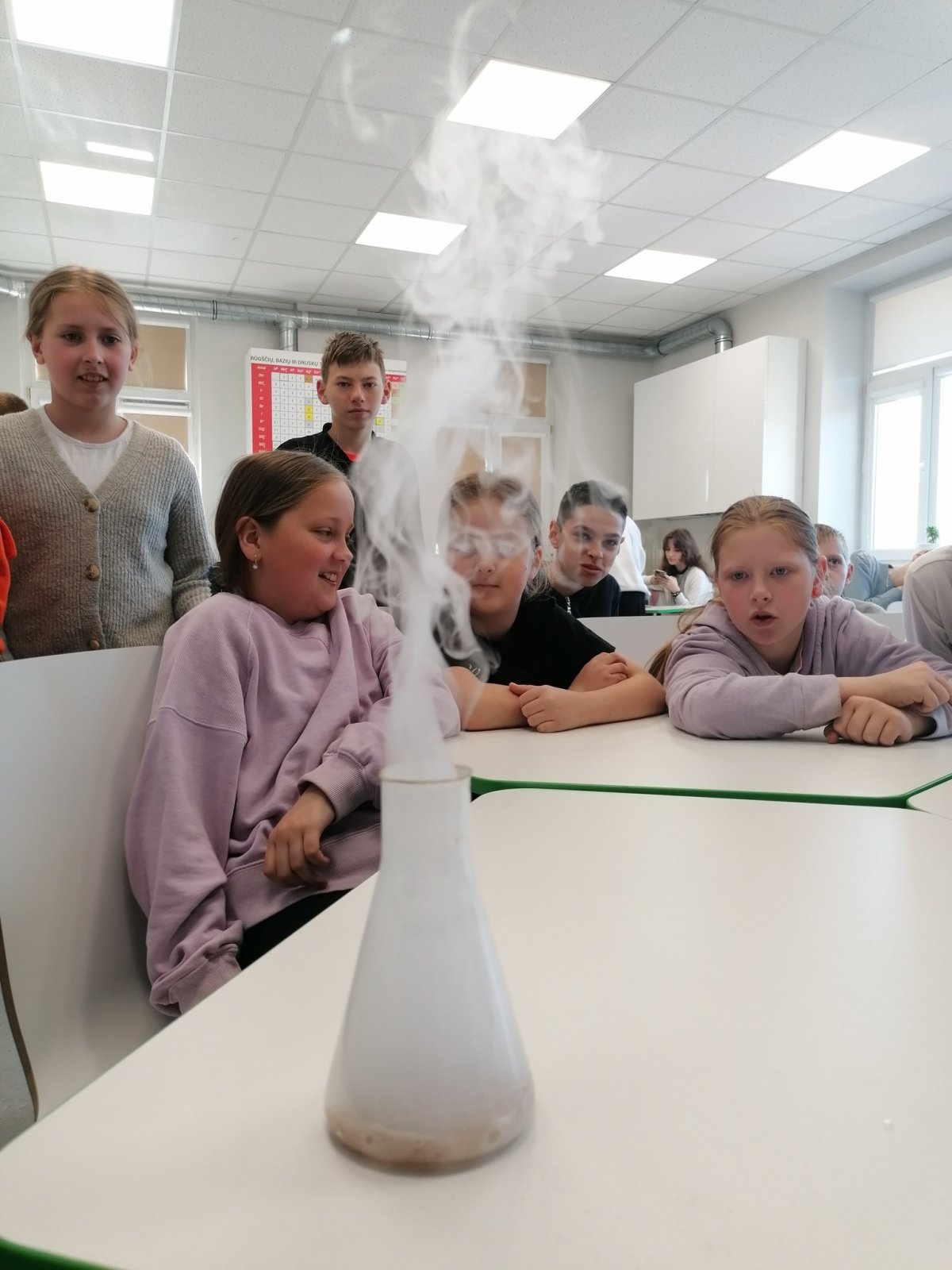 Chemia otacza nas bez względu na to, czy zdajemy sobie z tego sprawę. Eksperymenty dla dzieci to praktyczny sposób na to, aby ułatwić im połączenie szkolnej wiedzy z tym, co mogą zaobserwować w swojej rzeczywistości. Uczniowie obserwowali eksperyment z wulkanem, prosty i efektowny, który zachwycił każde dziecko, magię na talerzu – wystarczyło przygotować kolorowe drażetki, biały talerz oraz wodę, by obserwować kolorową tęczę, eksperymenty z sodą i balonem, z powietrzem, z wodą i olejem.