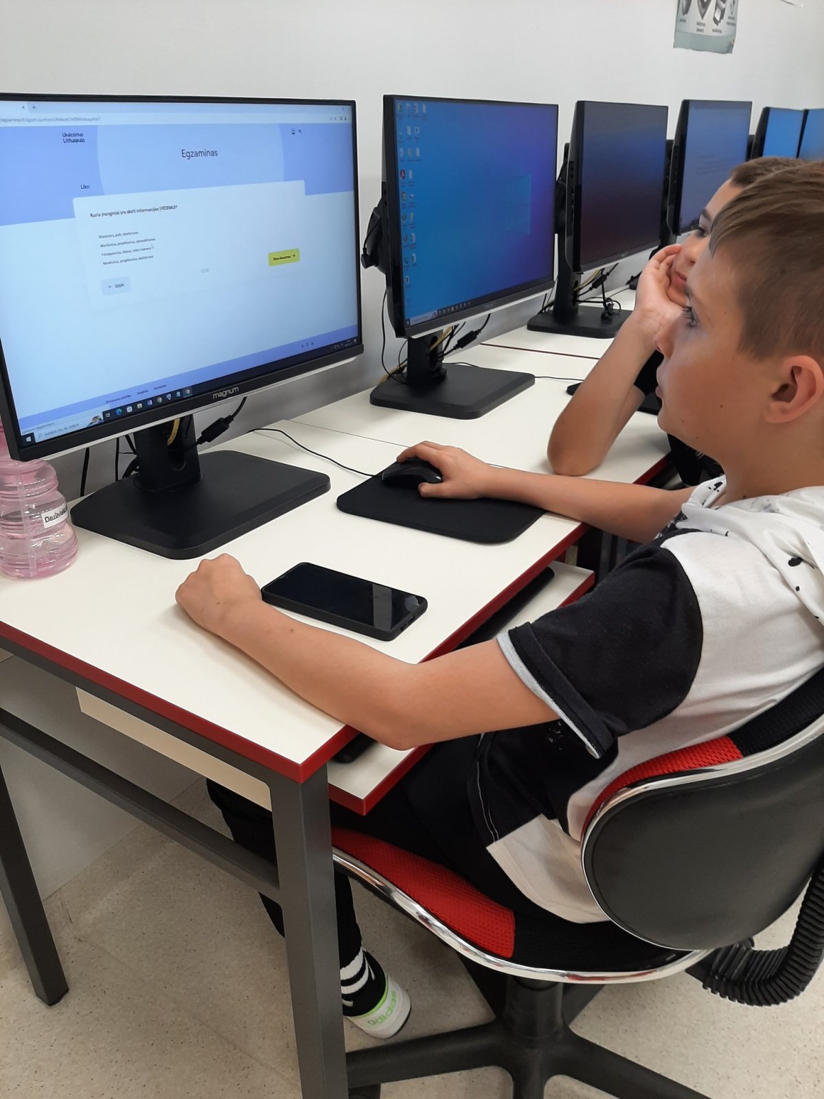 Gegužės 17 d. įvyko visuotinis IT egzaminas – pirmasis toks Lietuvoje, kai nemokamai pasitikrinti savo informacinių technologijų žinias ir laimėti prizus buvo pakviesti visi Lietuvos gyventojai. Mūsų gimnazijos 5-12 klasių moksleiviai irgi išbandė savo jėgas ir jungėsi prie nemokamo egzamino, nes informatikos mokslas šiandien svarbus ne tik programuotojams. O gebėjimas suprasti programavimo kalbas ir žinojimas, kaip veikia kompiuteriai šiais laikais yra būtinas, ypač sparčiai progresuojant dirbtinio intelekto technologijoms.