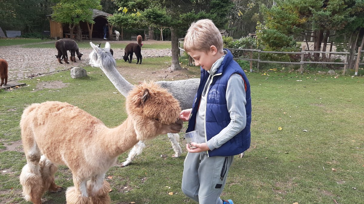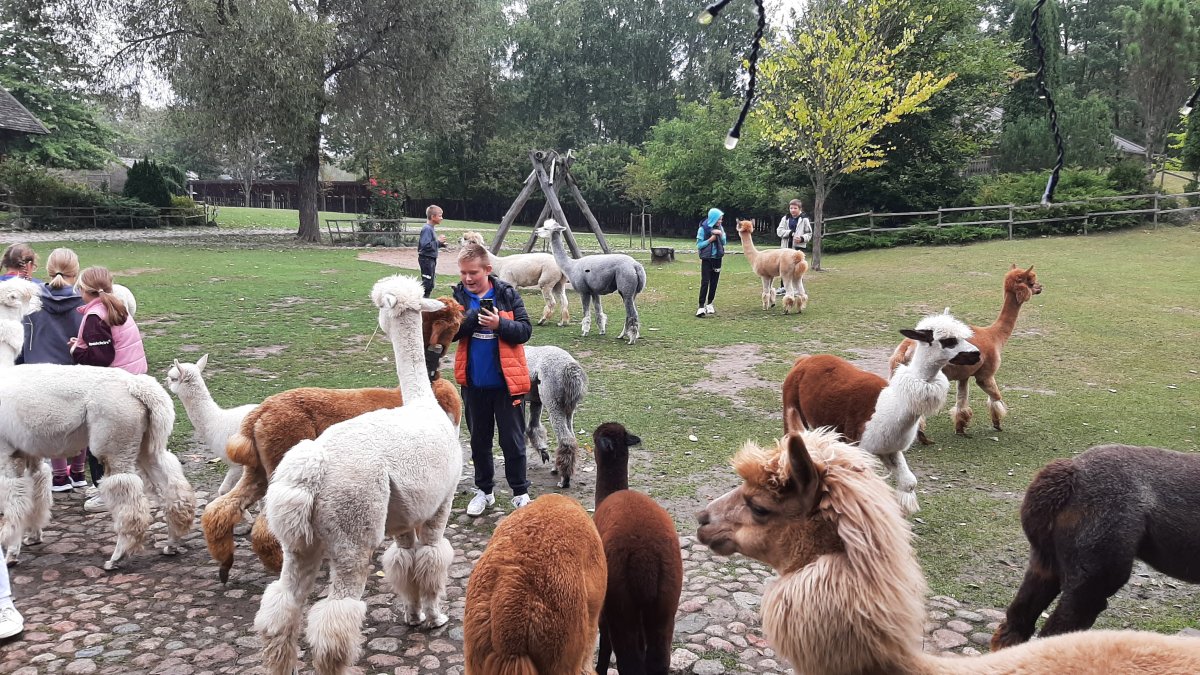 Spalio 4 dieną, 5b klasės mokiniai apsilankė Trakų rajono Seimėnų kaimo Alpakų ūkyje. Alpakų ūkio šeimininkė supažindino visus lankytojus iš kur kilo ir kaip atkeliavo pirmosios alpakos į Lietuvą, kuo ypatingi šie gyvūnai, kuo jie minta ir kaip tarpusavyje bendrauja. Visi galėjome alpakas ne tik paliesti, paglostyti, pamaitinti iš rankos, specialiai gyvūnams pritaikytu saugiu pašaru, bet ir pasidaryti pačių įspūdingiausių nuotraukų prisiminimui.