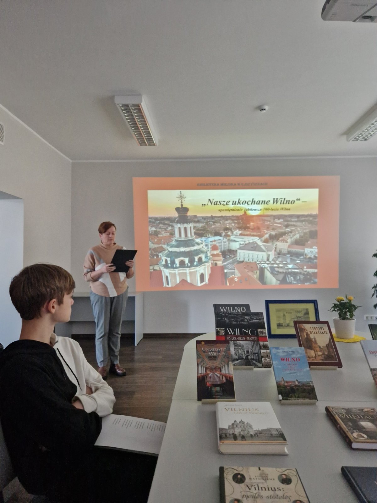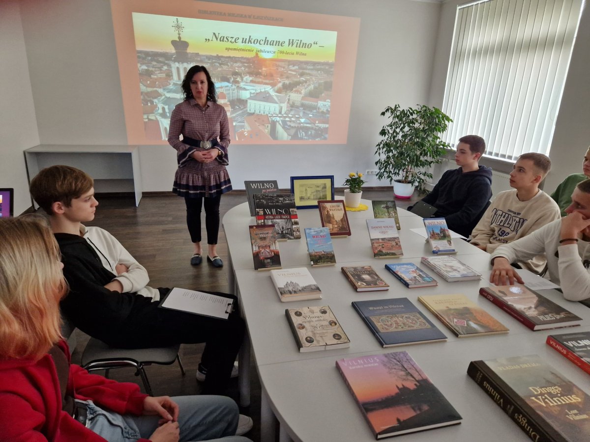 Z okazji minionego Święta Niepodległości Polski oraz obchodzonego w tym roku na Litwie Jubileuszu 700-lecia Miasta Wilna uczniowie klasy 10a wraz z nauczycielką języka polskiego panią Marzeną Juchniewicz przy współpracy bibliotekarki pani Barbary Wodejko zorganizowali zajęcia z języka polskiego pt. "Nasze ukochane Wilno...", które miały na celu rozwijanie zainteresowania historią oraz współczesnością Polski i Litwy, uczczenie Dnia Niepodległości Polski i Jubileuszu 700-lecia Miasta Wilna.