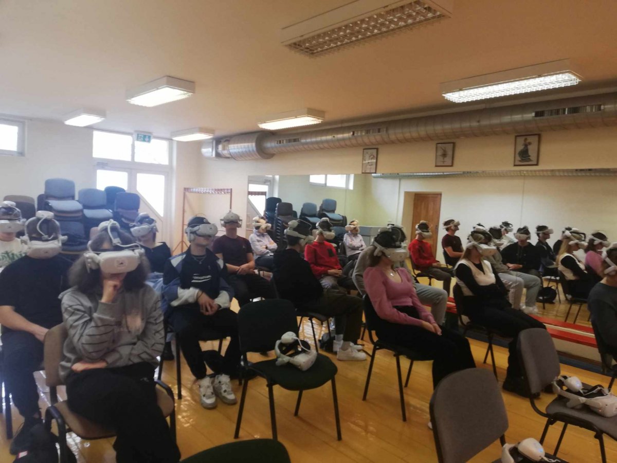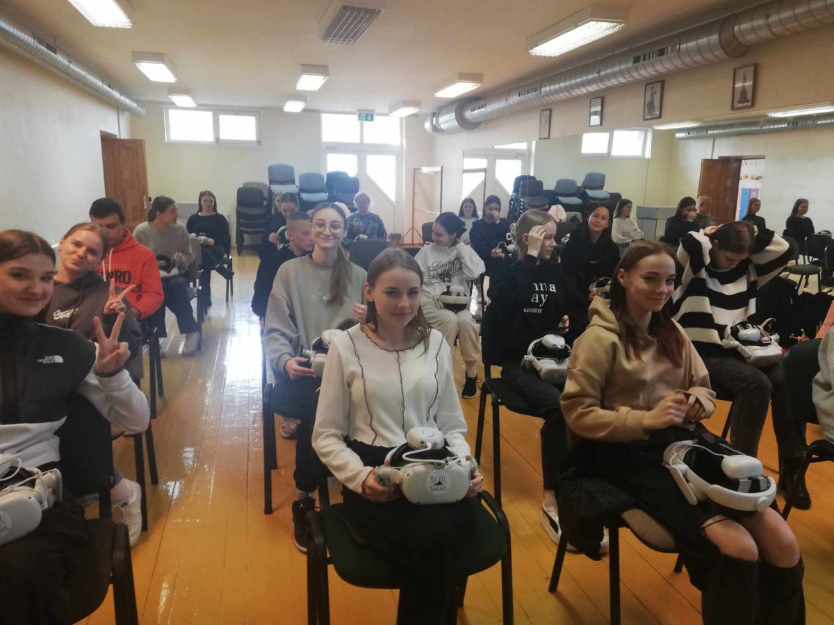 Vasario 28 dieną, mūsų gimnazijos II-ų bei IV-ų klasių mokiniai dalyvavo netradicinėje, integruotoje geografijos bei informacinių technologijų pamokoje – stebėjo virtualios realybės filmą „Angelų takais“ (vykdant kultūros paso programą). Tarptautinį pripažinimą pelnęs virtualios realybės projektas „Angelų takais” – tai „puota“ klasikinio meno ir šiuolaikinių technologijų mėgėjams, kurioje Mikalojaus Konstantino Čiurlionio muzika ir dailė susijungia į harmoningą kosminę visumą. Mokiniai virtualios realybės akinių pagalba atsidūrė M. K. Čiurlionio paveiksluose ir mėgavosi virtualios aplinkos pojūčiais ir įspūdžiais. Spalvų, neaprėpiamos erdvės ir netikėtumo akimirkos sukūrė mokiniams neišdildomą įspūdį. Kiekvienas išsinešė vis kitą labiausiai dėmesį sukausčiusi prisiminimą.