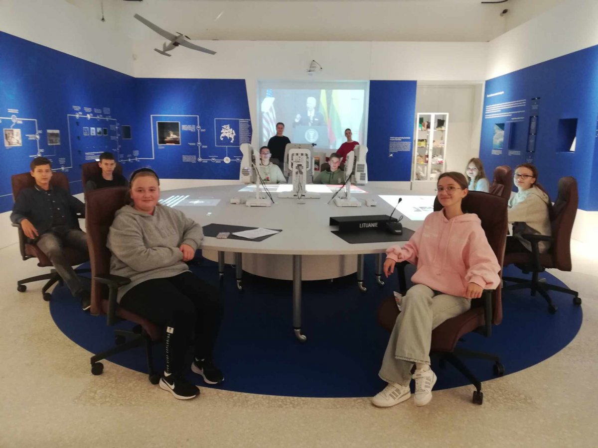 Edukacinio užsiėmimo metu, dirbdami komandose, mokiniai tyrinėjo ekspozicijos turinį bei susipažino su iškiliausiomis Lietuvos asmenybėmis, biudžeto sandara, tarptautinio bendradarbiavimo ypatumais. Netikėta informacija ir orientacinio žaidimo pobūdžio užsiėmimai neleido nuobodžiauti nei vienam!