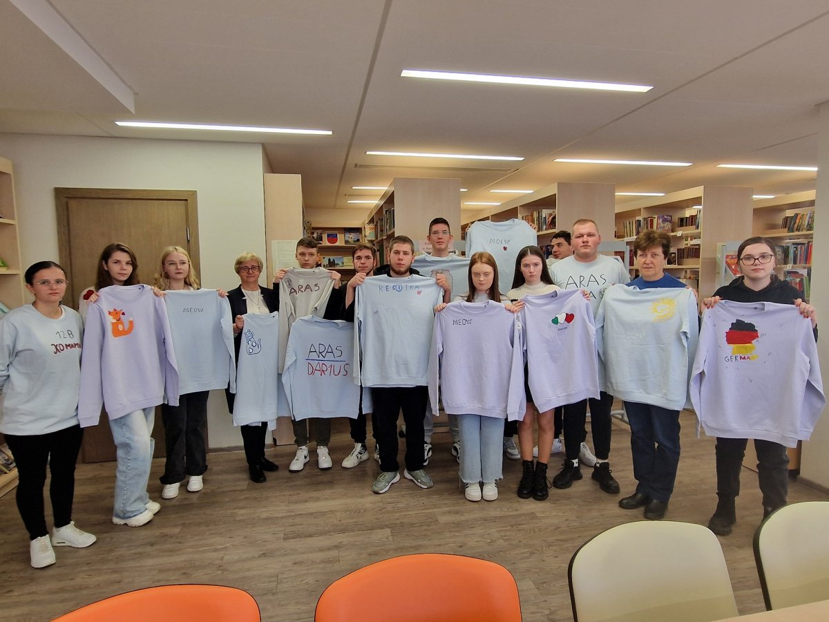 2024 m. lapkričio 19 d. IVG kl. mokiniai dalyvavo Šalčininkų rajono savivaldybės viešosios bibliotekos suorganizuotame edukaciniame užsiėmime „Piešimas ant džemperių“, kuris vyko Europos atliekų mažinimo savaitei paminėti. Tai buvo puiki galimybė prisidėti prie tvarumo idėjų sklaidos. Renginio metu MB „Lapės dirbtuvės“ edukatorės priminė, jog kiekvienas turėtų pagalvoti apie tai, kad planetai ir sau pakenktų kuo mažiau. Viešnios paskatino dalyvius susimąstyti apie aplinkosaugos problemas. Vienas paprasčiausių būdų - pakartotinis daiktų panaudojimas. Susitikimo metu buvo skatinamas kūrybiškas požiūris į daiktus, taip pat pristatytos idėjos, kaip kasdienius daiktus galime pasigaminti patys. Naudodami specialius tekstilės dažus, šablonus ir savo fantaziją, mokiniai sukūrė unikalius, asmeniškai dekoruotus drabužius. Kūrybinis procesas ne tik suteikė džiaugsmo, bet ir įkvėpė visus atsakingiau žiūrėti į atliekų mažinimą. Užsiėmimo pabaigoje mokiniai atsakinėjo į klausimus apie atliekų mažinimą. Edukacija „Piešimas ant džemperių“ finansuojama iš Šalčininkų rajono savivaldybės aplinkos apsaugos rėmimo specialiosios programos lėšų. Dėkojame už kvietimą.