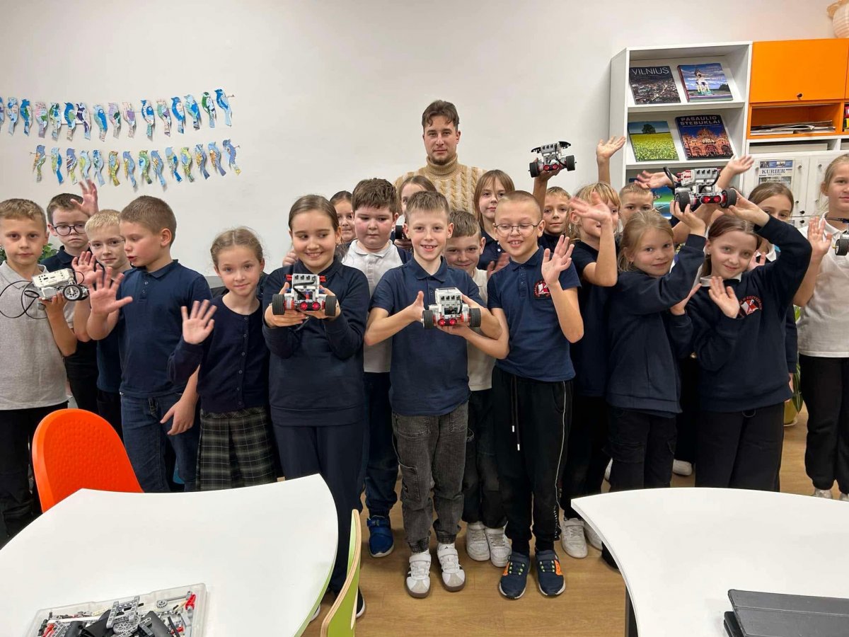 19 grudnia uczniowie klas początkowych naszego gimnazjum mieli możliwość gościć u siebie Studio Robotyki („Robotikos Studija") z edukatorem Andriusem na czele. Zapoznał on uczniów nie tylko z inżynierią i oprogramowaniem, ale również z pojęciem twórczego podejścia, podejmowania decyzji, rozwiązywania problemów oraz z nawykami pracy w zespole.