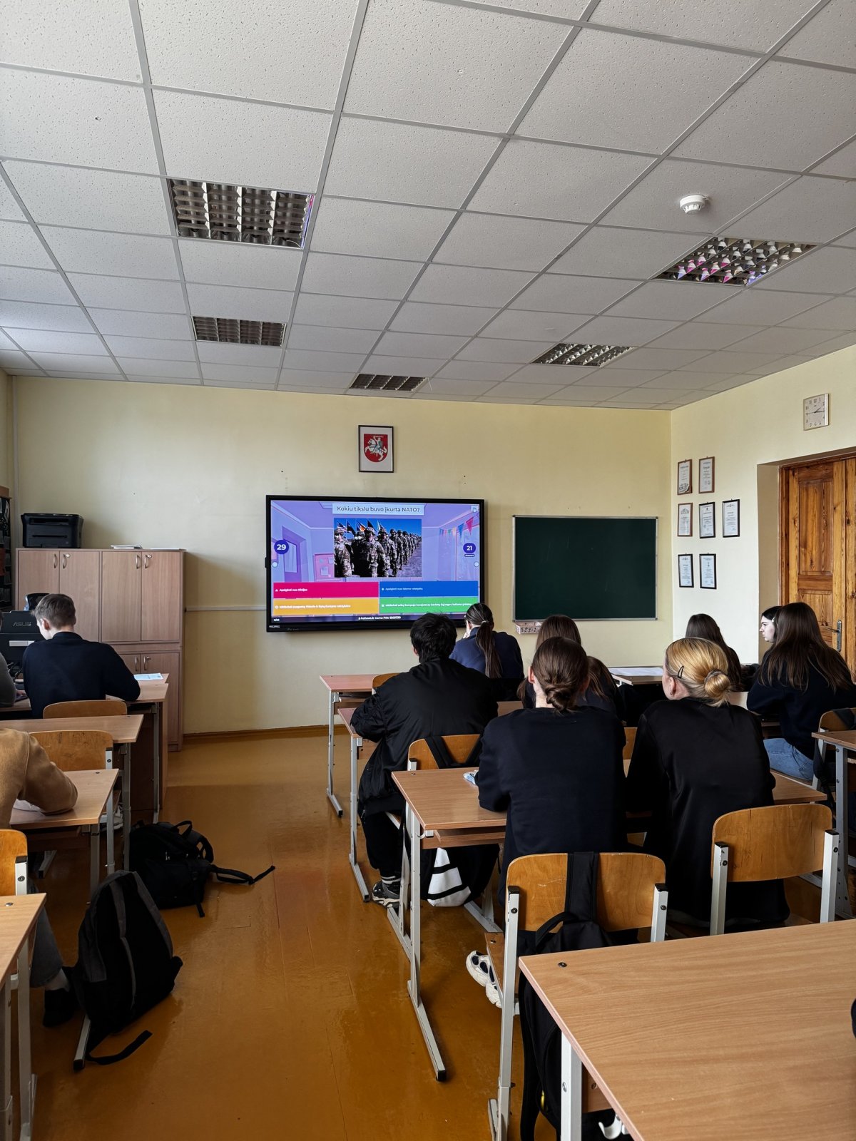 Niezwykłym przeżyciem była lekcja w miejskim muzeum. W klasach gimnazjalnych odbył się konkurs ,,Znawca Historii Litwy". W klasach młodszych dużym zainteresowaniem cieszyły się wiktoryny. Nie zabrakło również kina historycznego. Uczniowie mieli okazję obejrzeć filmy dokumentalne, ukazujące drogę Litwy do niepodległości.