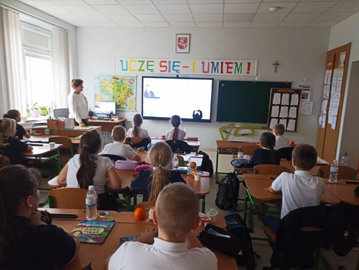Mūsų gimnazijos pradinukai kartu su savo mokytojomis bei Visuomenės sveikatos priežiūros specialiste Ivona Žemaitiene išklausė, o paskui aptarė „SAUGAUS ELGESIO INTERNETE ABC“.