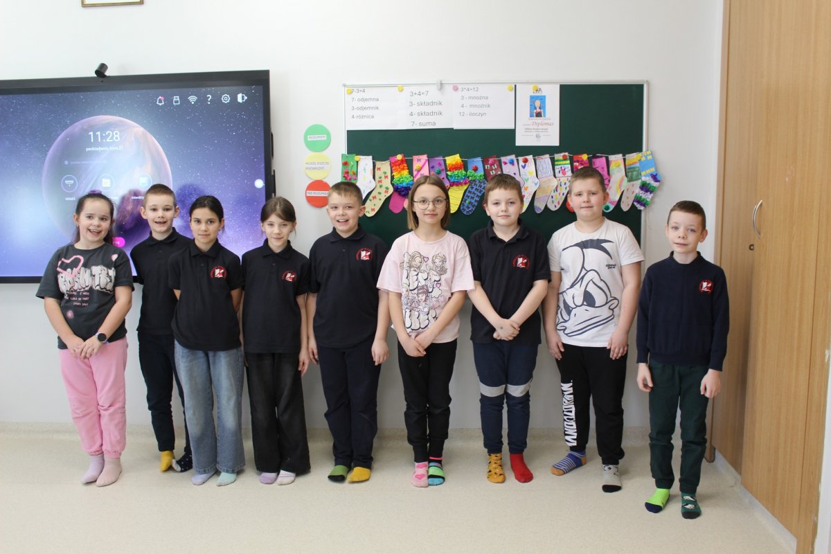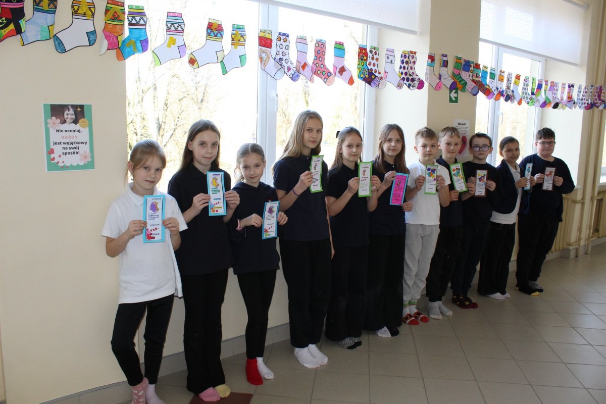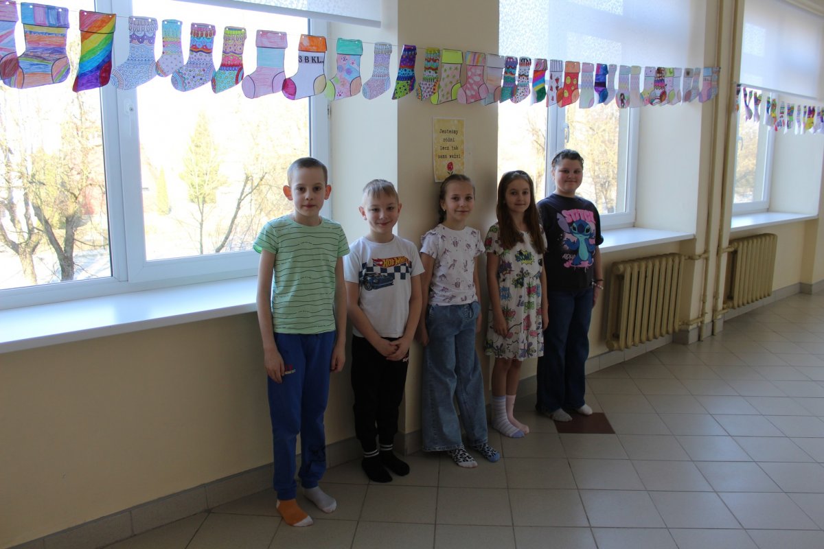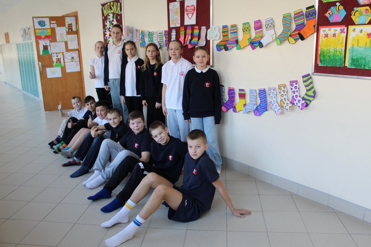 21 marca to wyjątkowy dzień – Światowy Dzień Zespołu Downa! Ta data nawiązuje do obecności dodatkowego, trzeciego chromosomu w 21. parze chromosomów. Święto to ma na celu zwiększenie świadomości, wsparcie oraz promowanie równości i akceptacji. Uczniowie klas początkowych aktywnie wzięli udział w Świętowaniu tego Dnia. Ozdobili szkolne korytarze własnoręcznie udekorowanymi skarpetami. Założyli również skarpety “nie do pary”.