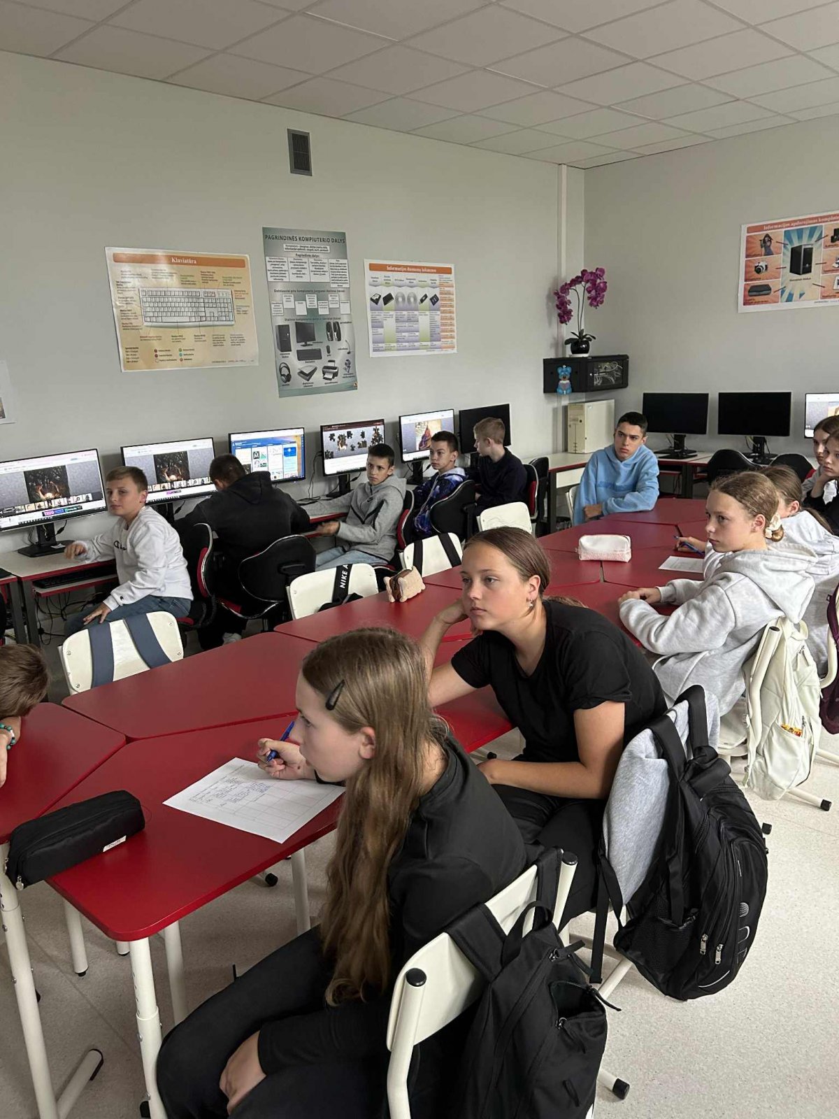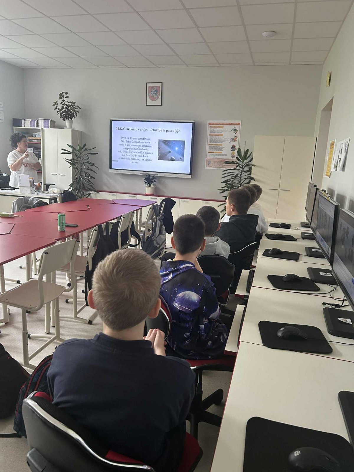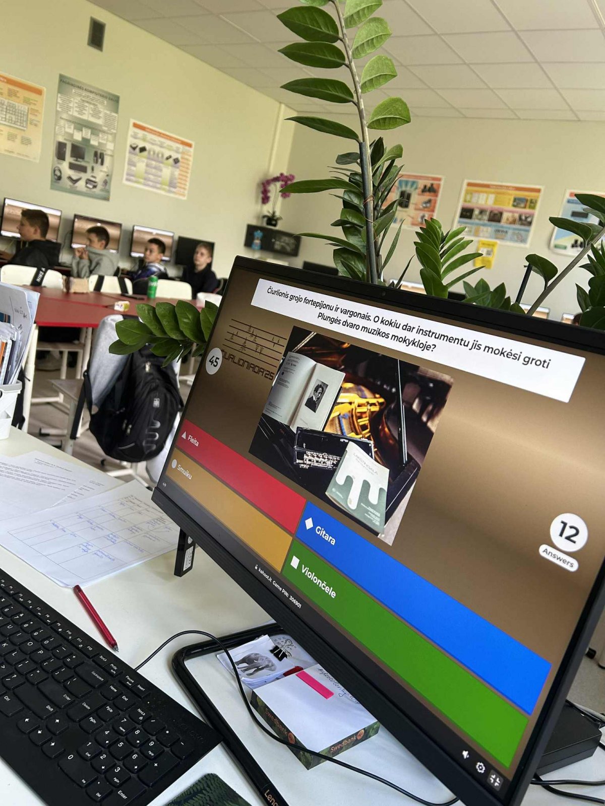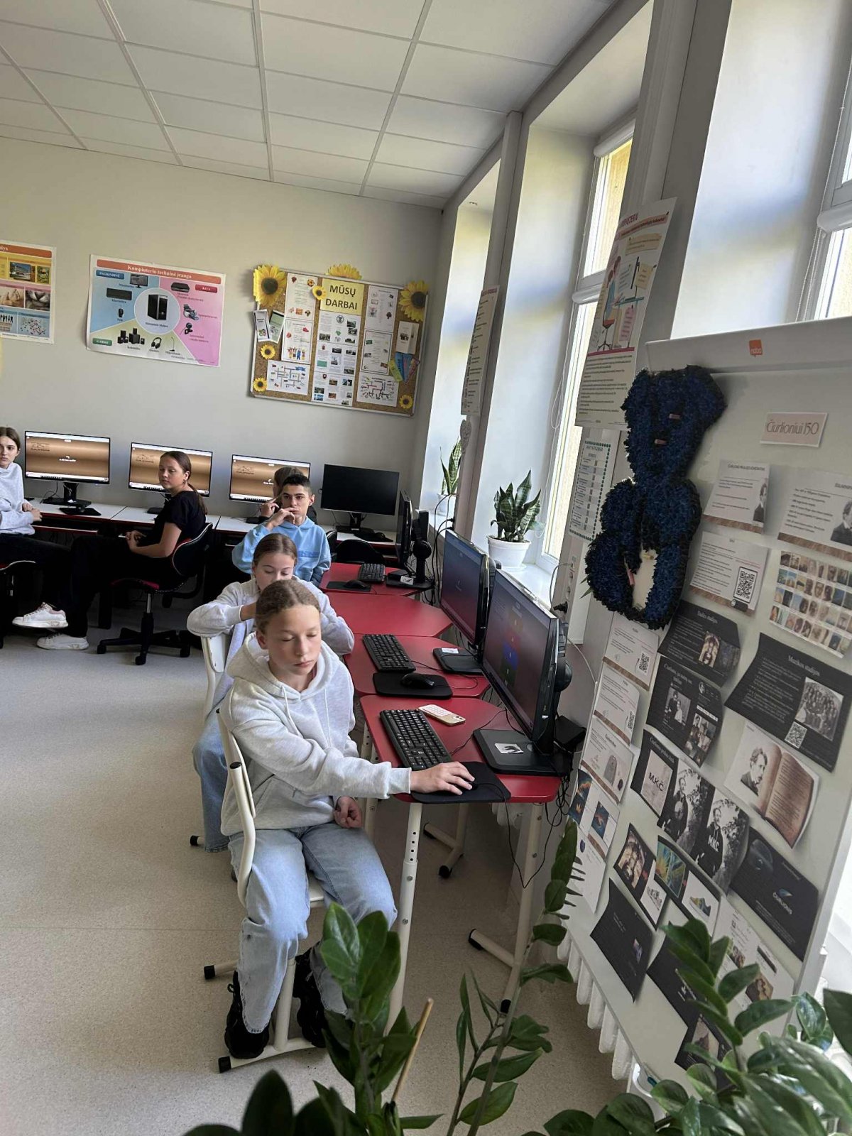 Klasėje skambėjo Čiurlionio muzika, o mokiniai kompiuteriuose dėliojo jo paveikslų dėliones ir atrado įdomių faktų apie kompozitoriaus bei dailininko gyvenimą ir kūrybą. Smagiai varžydamiesi „Kahoot“ žaidime jie pasitikrino savo žinias.