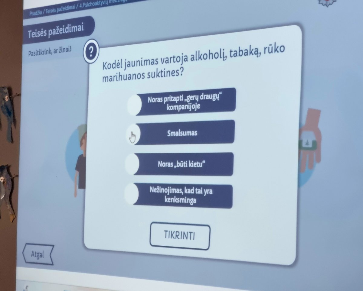 • Mokiniai praplėtė žinias apie teisines pasekmes už neteisėtą psichotropinių medžiagų vartojimą.