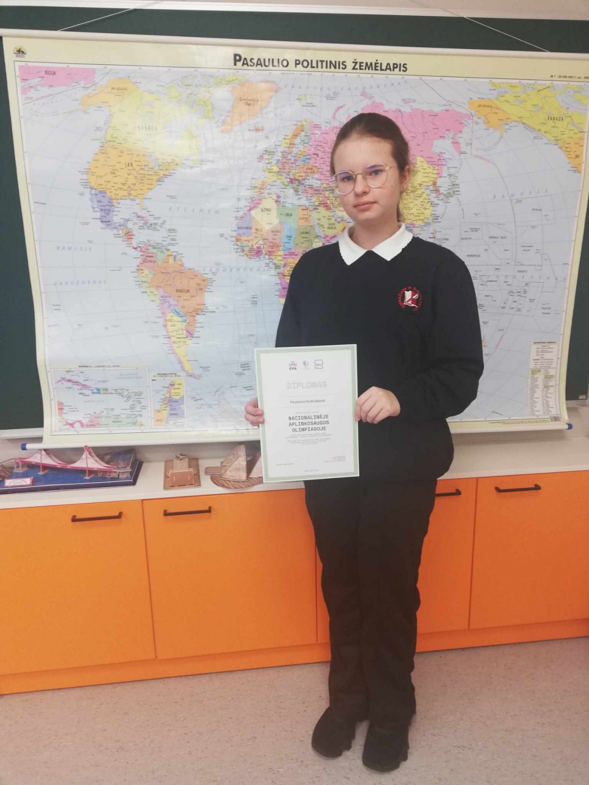 Už puikias žinias apie atsakingą vartojimą bei rezultatus, atsakant į Nacionalinės Aplinkosaugos Olimpiados testo klausymus, diplomu buvo apdovanota 7b klasės mokinė Faustyna Andruškevič.