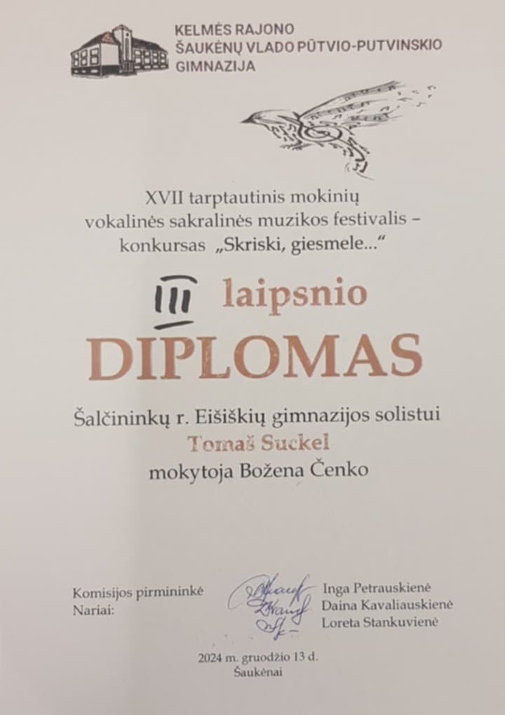 Tomaš Suckel – III laipsnio diplomas.
