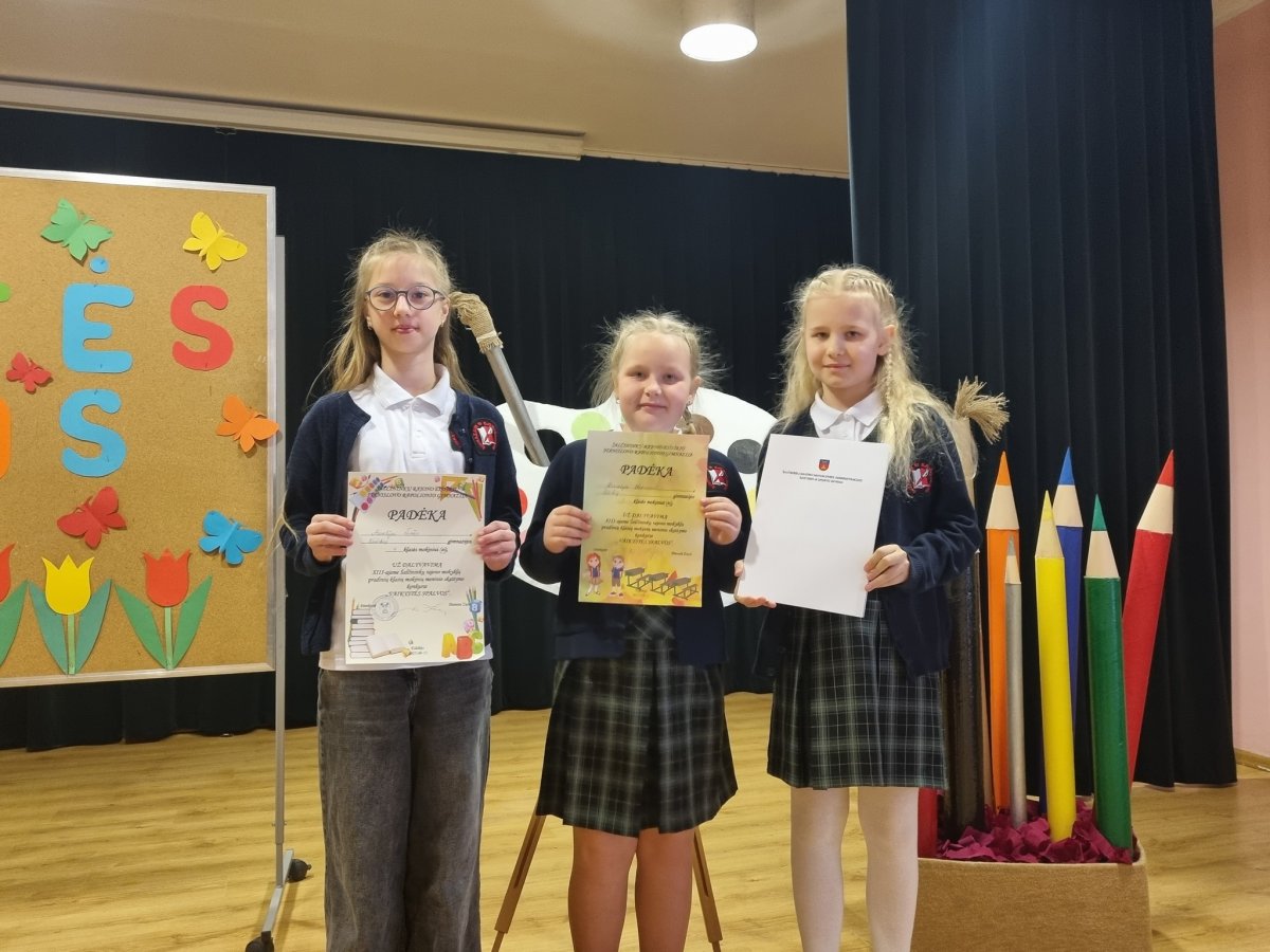 Balandžio 11 d. Eišiškių Stanislovo Rapolionio gimnazijoje vyko XIII Šalčininkų rajono mokyklų pradinių klasių mokinių meninio skaitymo konkursas "Vaikystės spalvos 2025". Mūsų gimnazijai atstovavo Kornelija Stakucevič 1a klasės mokinė, Agata Andruškevič 3b klasės mokinė ir Aurelija Vinčo 4b klasės mokinė.