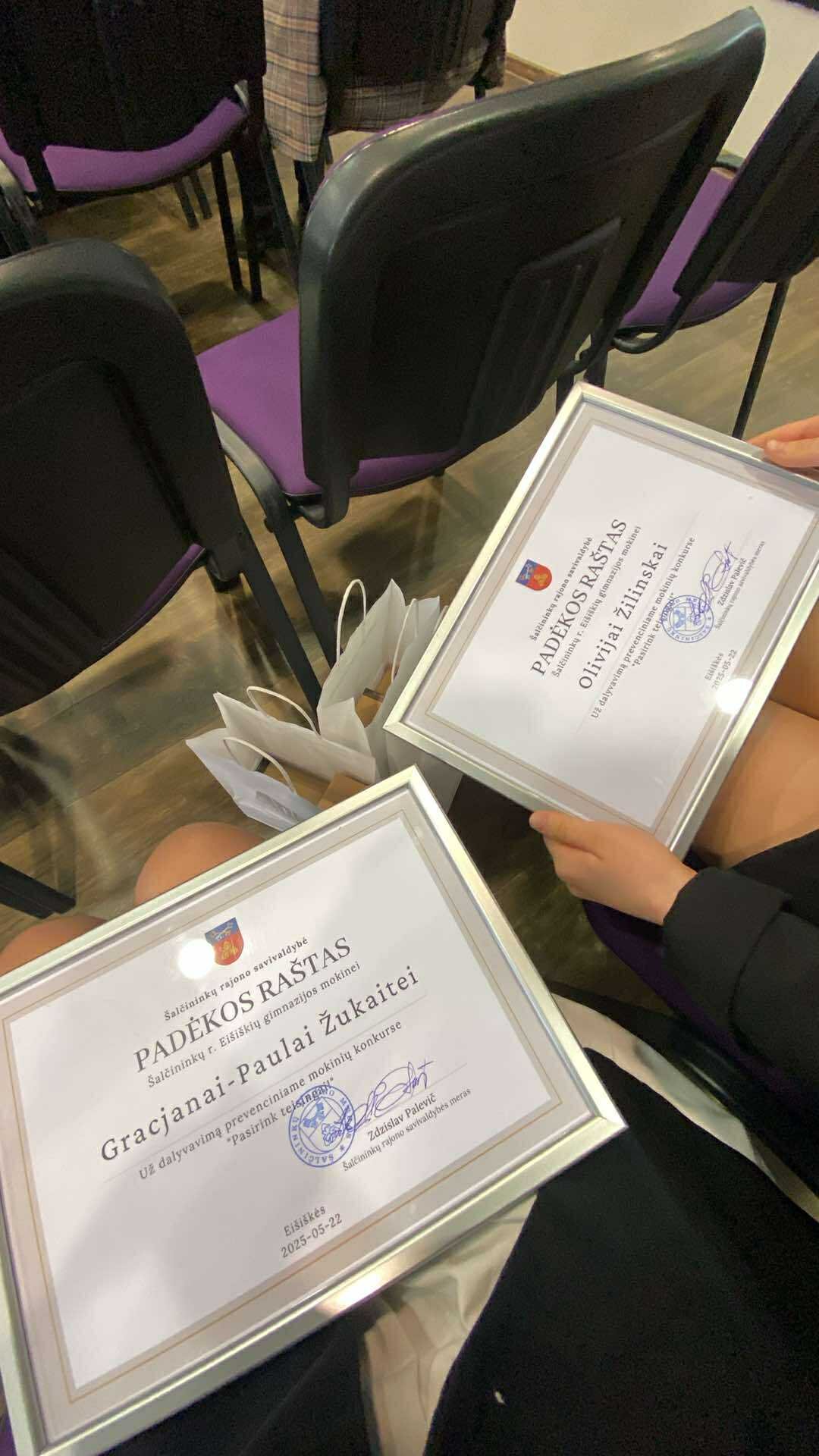 Šių metų gegužės 22 d. mūsų gimnazijos 8b klasės mokinės Olivia Žilinska ir Gracjana - Paula Žukaitė dalyvavo jau trečius metus Vaiko gerovės komisijos iniciatyva organizuotame konkurse ,"Pasirink teisingai".