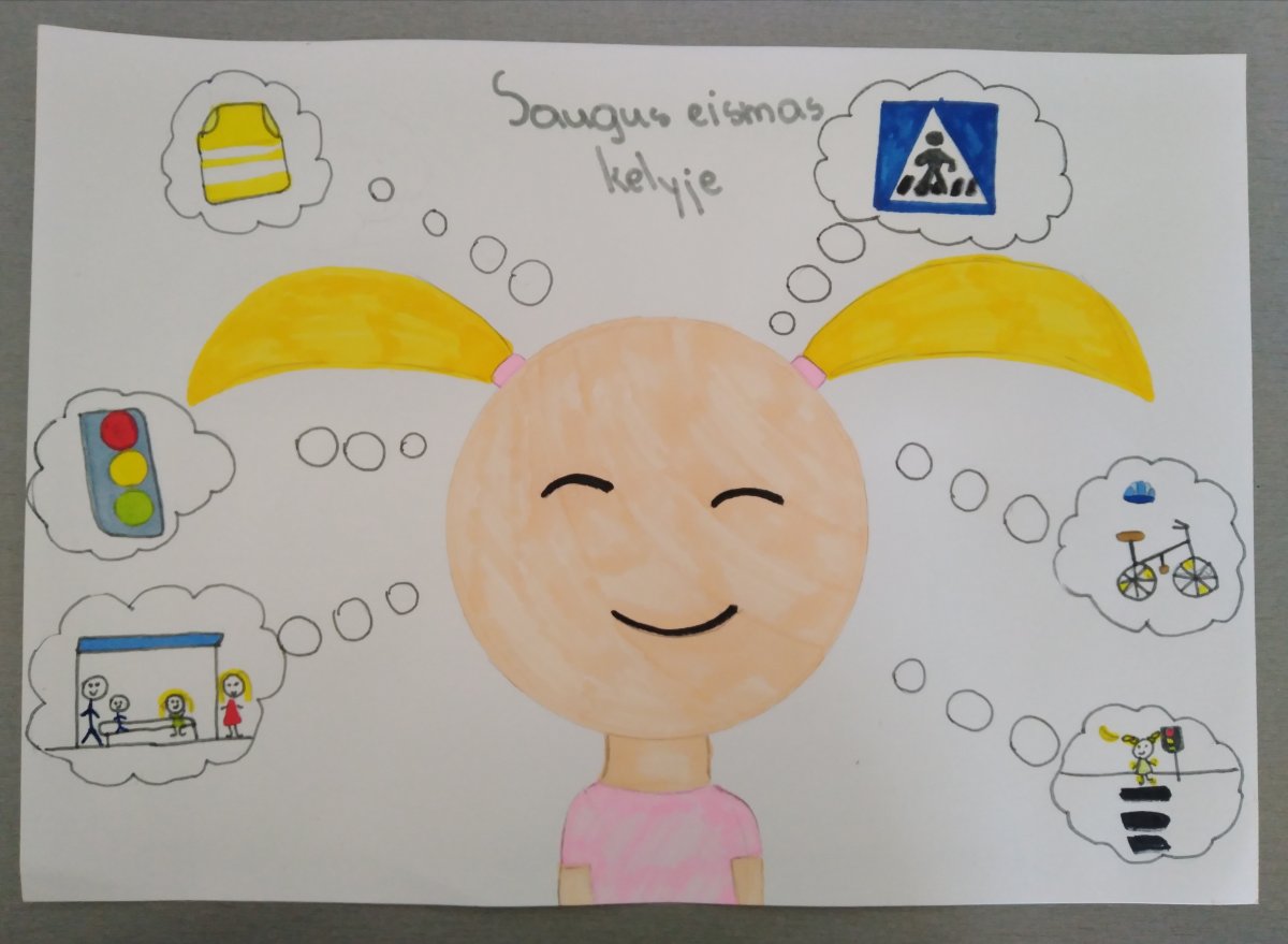 6, 7 klasių mokiniai dalyvavo piešinių konkurse ,,Saugus eismas kelyje 2021“, kurį organizavo valstybės įmonė Lietuvos automobilių kelių direkcija.