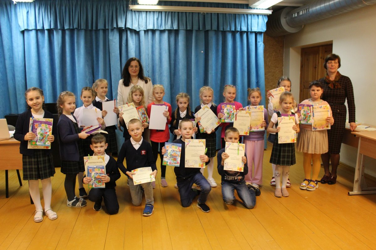 Miło nam ogłosić wyniki Konkursu Logopedyczno- Recytatorskiego z udziałem klas 1-4 „Wierszyki łamiące języki”. Celem konkursu było kształtowanie umiejętności poprawnej wymowy , doskonalenie wymowy trudnych głosek oraz rozwijanie uzdolnień recytatorskich. Komisja oceniająca w składzie wicedyrektor Gimnazjum p. Alicji Jankiewicz, koordynator do spraw pozalekcyjnych p. Marzeny Juchniewicz oraz logopedy Iwony Krajewskiej wyróżniła następujące recytacje: Agaty Andruszkiewicz 1a (naucz. Janina Miszkinis) Lei Jurcziukonitie 1a (naucz. Janina Miszkinis) Amelii Songin 1b (naucz. Jadwiga Leonowicz) Aurelii Winczo 2b (naucz. Marija Motus) Aurelii Baltiukiewicz 3a (naucz. Teresa Gotowiecka) Aleksandry Wodejki 4a (naucz. Czesława Romanowskaja) Bardzo dziękujemy za udział w Konkursie, za trud włożony w naukę wierszy i serdecznie gratulujemy zwycięzcom.