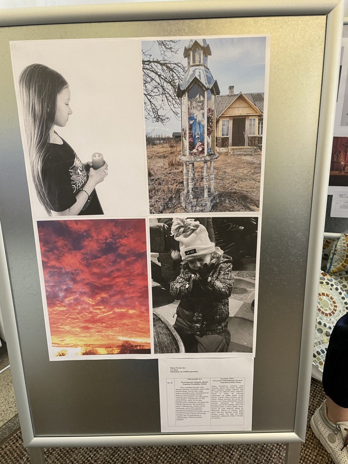Uczennice 9b klasy naszego Gimnazjum, za zachętą katechetki s.Ernesty, wzięły udział w religijnym konkursie fotograficznym pt. "Drogami Miłosierdzia" zorganizowanym przez Centrum Katechetyczne Archidiecezji Wileńskiej. Konkurs polegał na przedstawieniu w kolażu zdjęć treści z fragmentów dzienniczka s. Heleny Majewskiej - anielanki pracującej w Wilnie. Praca Patrycji Winczo otrzymała nominację "Za oryginalność".