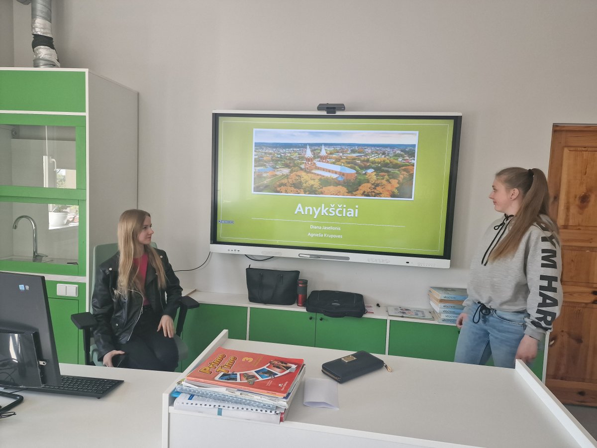 Gegužės 9-12d. 9a klasė anglų kalbos pamokose vykdė projektinę veiklą "The Area of Natural Beauty in Lithuania". Mokiniai grupėse domėjosi, rinko ir pristatė informaciją anglų kalba apie nuostabiausius Lietuvos kraštovaizdžio kampelius, tokius kaip Vėjūnėlės parkas, Kernavė, Anykščių Lajų takas, Čepkelių gamtos rezervatas ir kt..