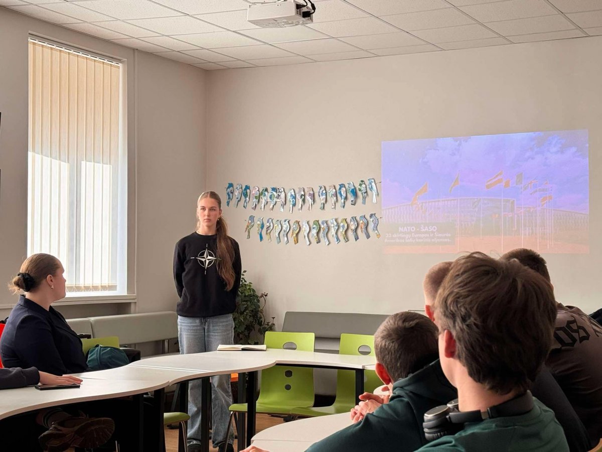 Mūsų gimnazistė Emilija Stančik teikė paraišką dėl galimybės dalyvauti jaunųjų NATO jaunimo ambasadorių programoje. Atranka buvo labai didelė - šimtai anketų ir ypatingai didelė konkurencija tarp kandidatų. Sėkmė lydėjo mūsų gimnazistę - sveikiname Emiliją tapus NATO jaunimo ambasadore! Kas toliau? Toliau jos laukia mokymai, kurių metu įgis ne tik daug naudingų žinių, susitiks su NATO kariais esančiais Lietuvoje, bet ir tuo pačiu praktiškai įrodys savo gebėjimus.