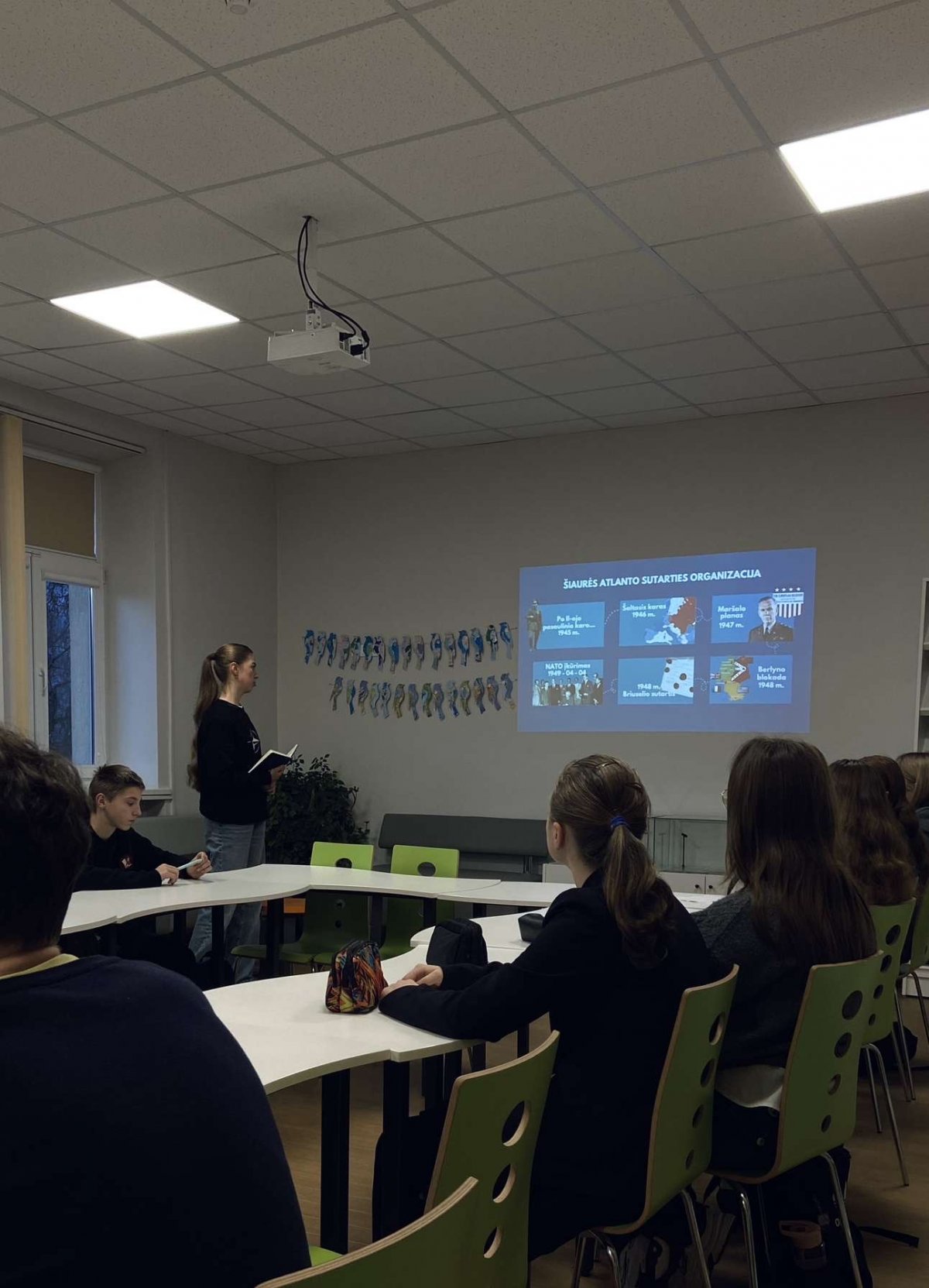 2025 m. sausio 30 d. Emilija vedė susitikimą su 8A, 8B, 10A ir 10B klasių mokiniais, kuriame aptarė regioninio saugumo politiką, Lietuvos kariuomenės veiklą, NATO struktūrą ir šiuolaikinius saugumo iššūkius. Susitikimo pabaigoje mokiniai galėjo pasitikrinti savo įgytas žinias žaisdami Kahoot viktoriną.