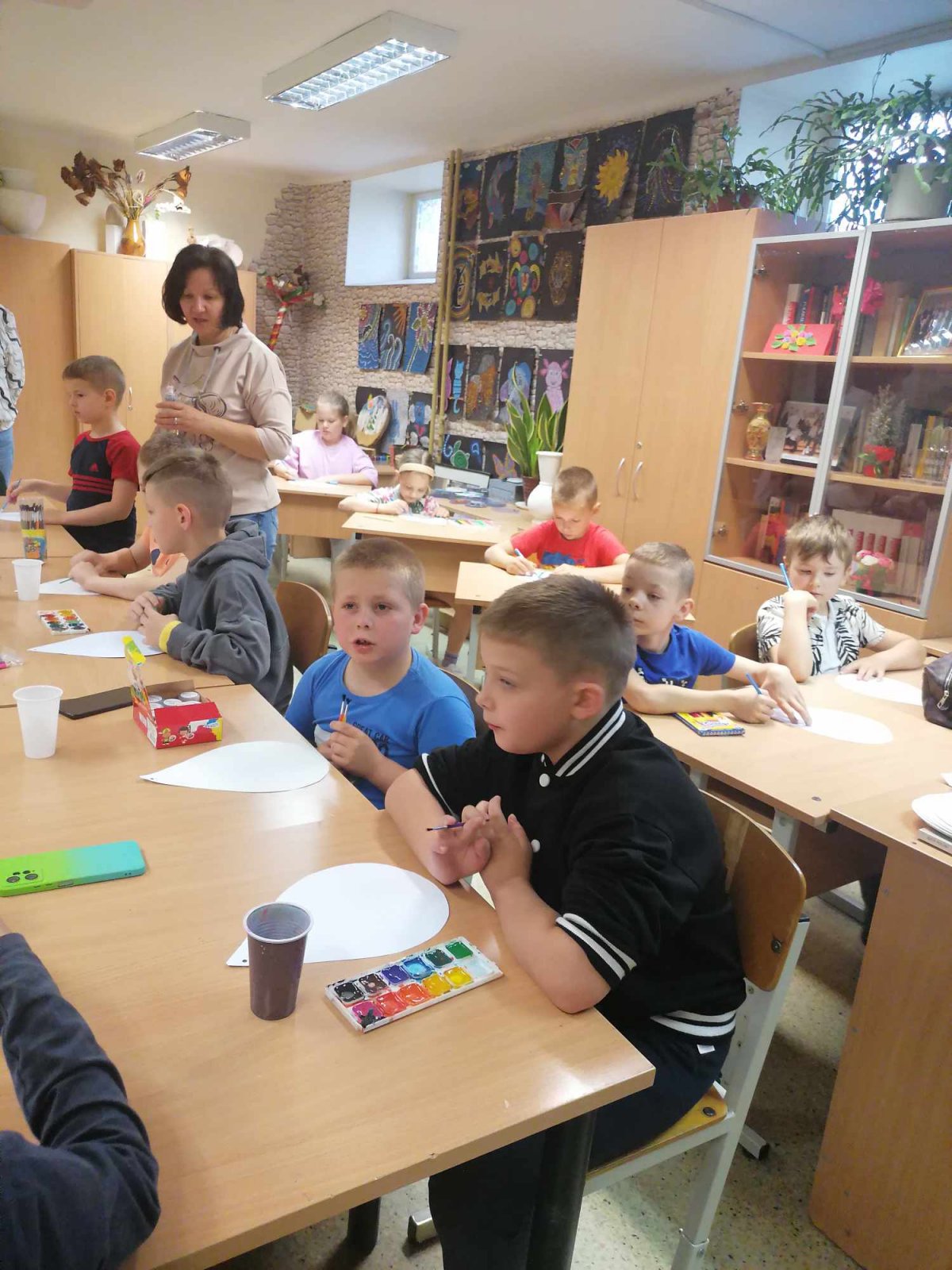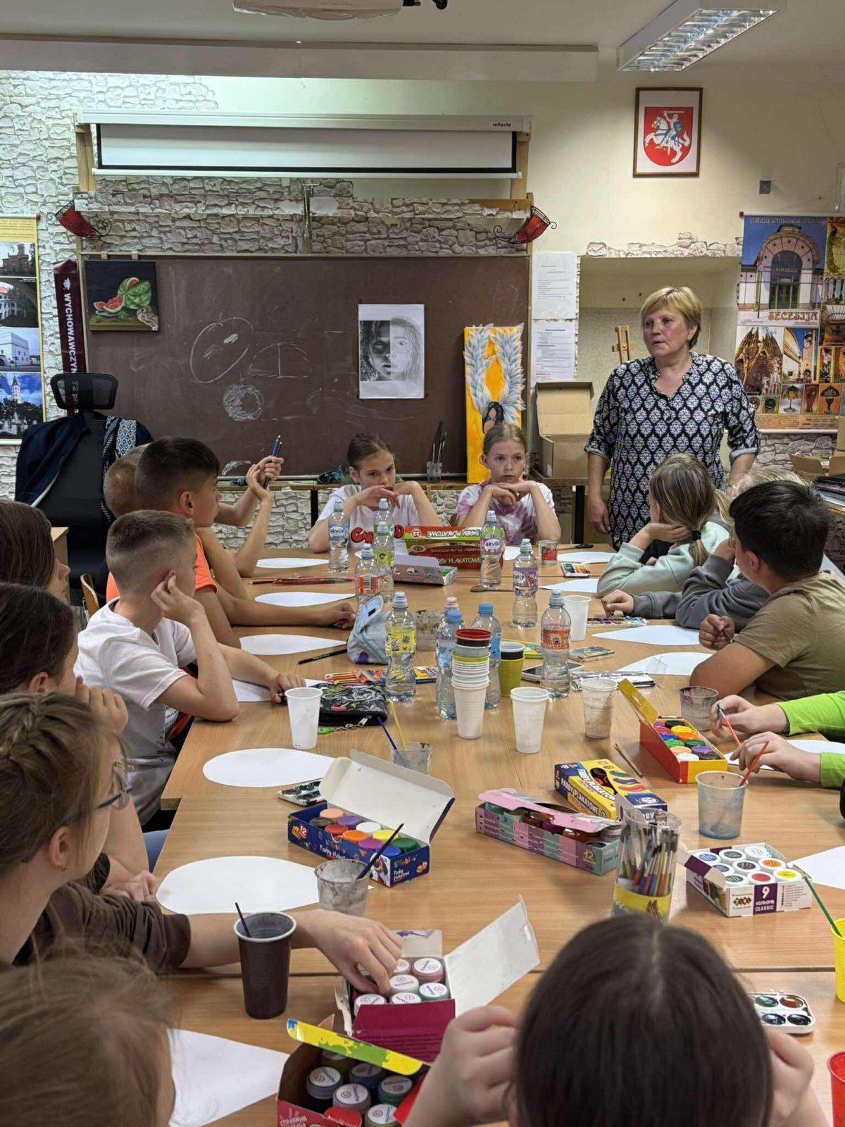 Na warsztatach plastycznych ,,Twórz, eksperymentuj i rozwijaj swą kreatywność” dzieci odbyły magiczną podróż do krainy Kropelki wody, gdzie mogły odkryć swoje talenty artystyczne, malować i tworzyć niezwykłe dzieło pod czujnym okiem instruktora od plastyki pani Olgi Zapaśnik. Każdy zaprojektował własną kropelkę wody, która przypomni obóz letni 2025.
