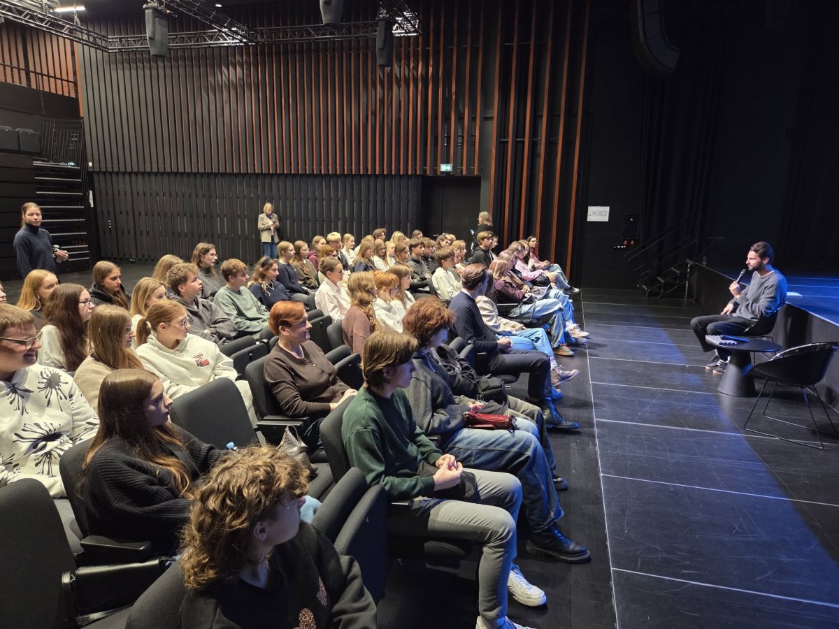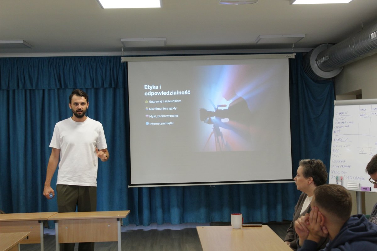 15 października 2025 r. do naszego gimnazjum przybyli dziennikarze TVP Wilno Panowie Tomasz Karazo i Łukasz Czunkiewicz, którzy przeprowadzili warsztaty dziennikarskie, polegające na nauce zdobywania umiejętności pracy przed kamerą, przeprowadzania wywiadów oraz nagrywania rolek. Zajęcia praktyczne poprzedziła spora dawka wiedzy teoretycznej. Razem z Tomaszem i Łukaszem do naszego gimnazjum przybyła Dyrektor TVP Wilno Pani Joanna Warecha, która czuwała nad przebiegiem warsztatów oraz przekazała młodzieży wiele cennych wskazówek i porad, opartych na swoim wieloletnim doświadczeniu i pracy w telewizji.