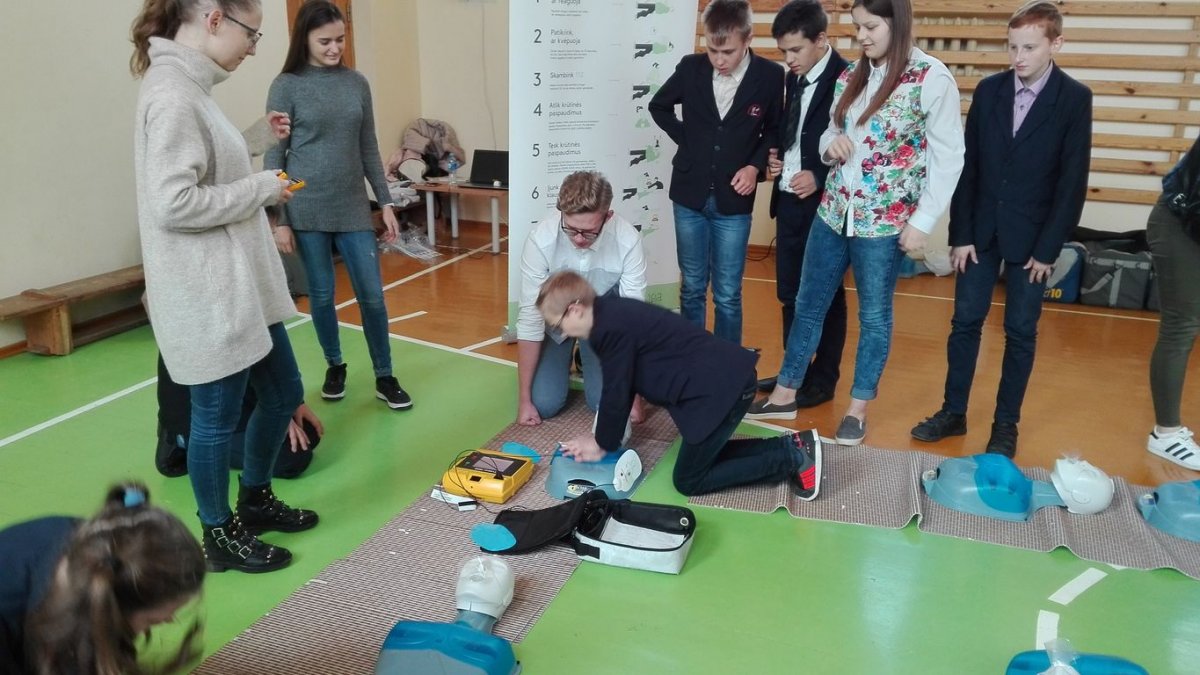 Praktiniai pirmosios pagalbos tiekimo mokymai mokiniams labai patiko. Džiugina, kad vaikai greitai perprato gaivinimo mechanizmą ir pirmosios pagalbos suteikimo svarbą.
