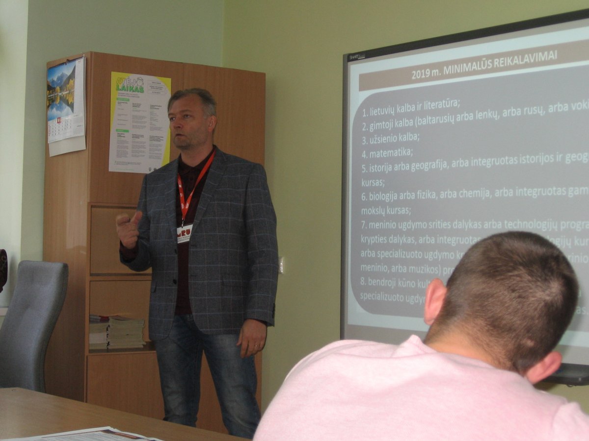 Susitikimo metu gerb. Saulius labai išsamiai ir aiškiai papasakojo abiturientams, į ką jie turi atkreipti dėmesį pasirinkdami tam tikras studijų programas, kad galėtų jas studijuoti.