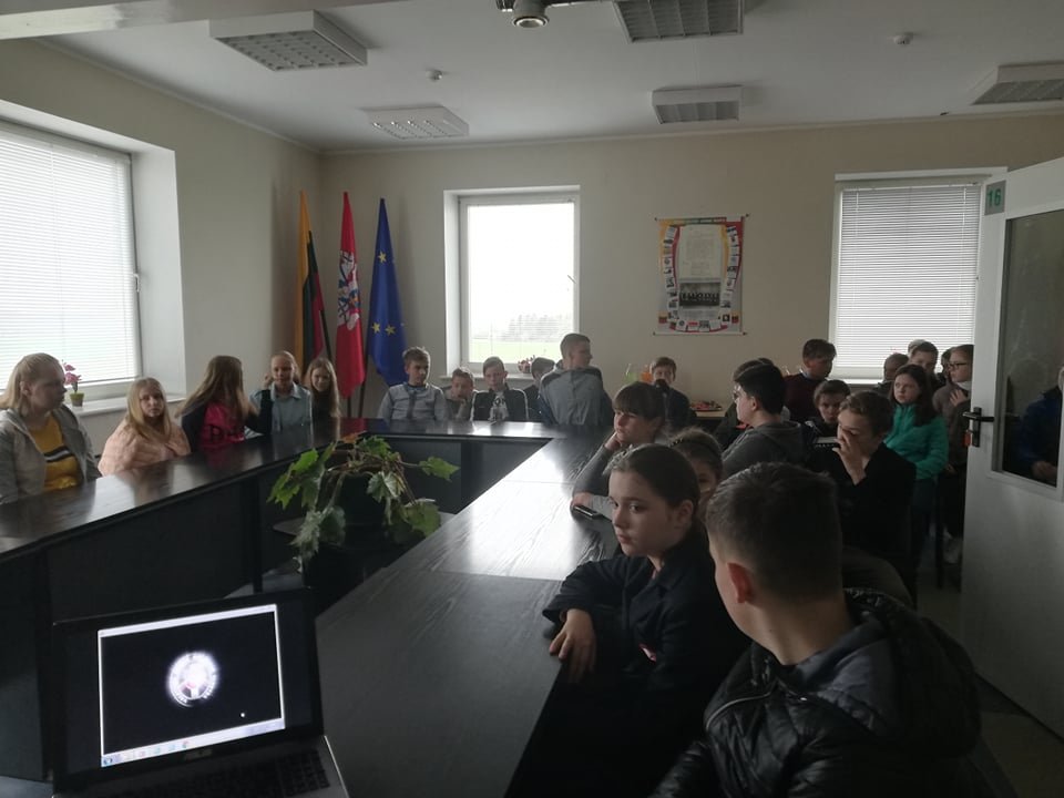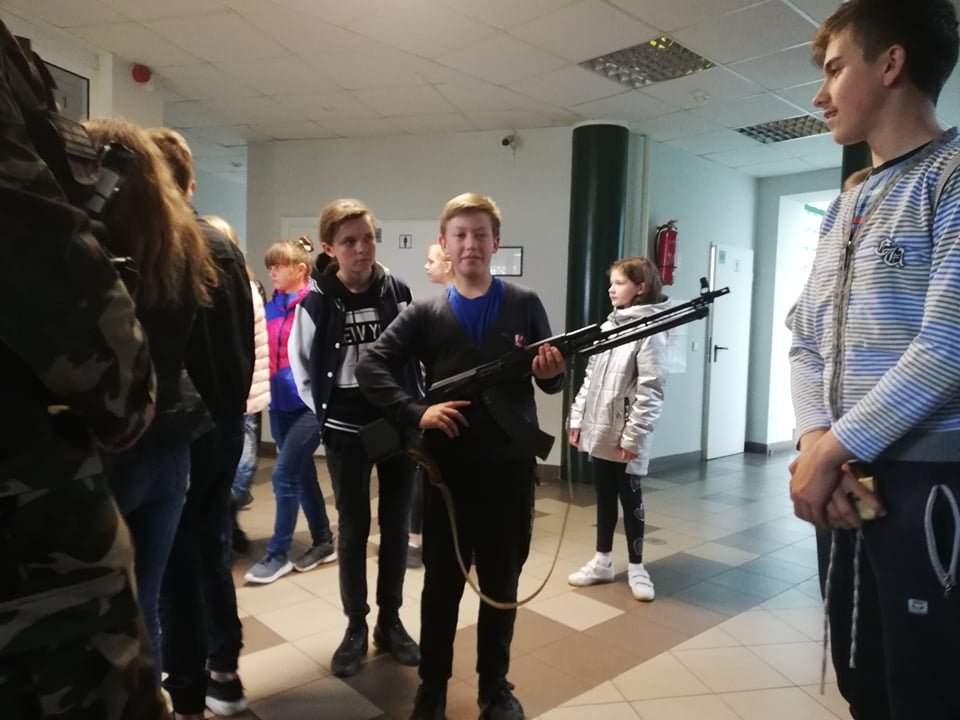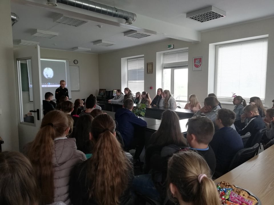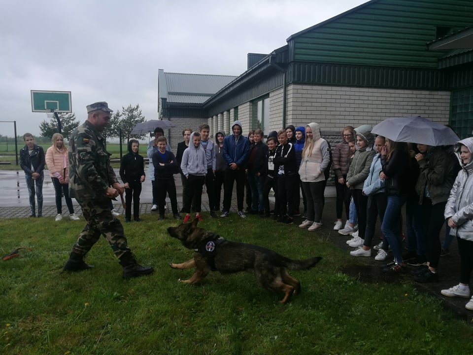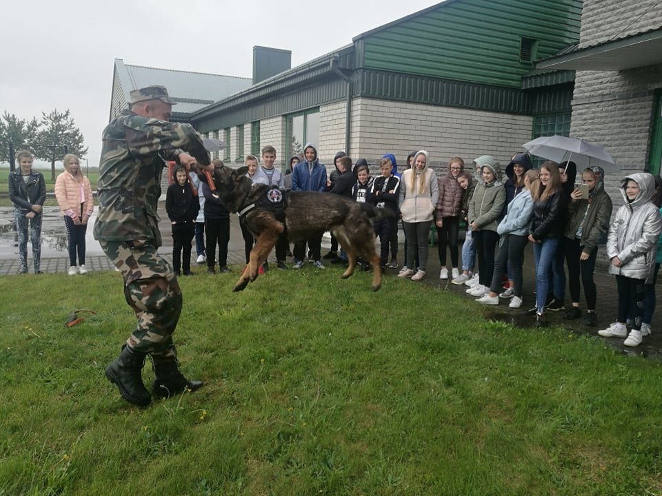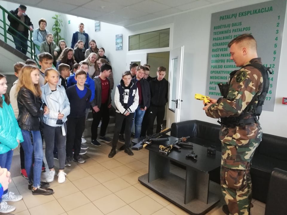 Užkardos vado pavaduotoja Diana Dovjad-Ulbinienė papasakojo ir parodė filmuką apie pasieniečio profesiją, parodė užkardos patalpas, turimus ginklus. Mokiniai turėjo galimybę išbandyti žiūronus, pamatyti pasieniečių naudojamas transporto priemones, stebėti kinologo užsiėmimą su šunimi. Su geromis emocijomis sugrįžo į gimnaziją.