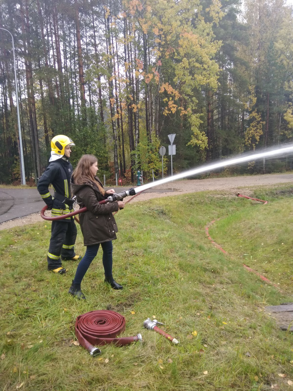 Šių metų spalio 10 d. mūsų gimnazijos IVG klasių mokiniai dalyvavo Ugniagesių gelbėtojų mokykloje organizuojamoje Atvirų durų dienoje. Ugniagesio gelbėtojo profesija domėjosi ir merginos, ir vaikinai. Renginio metu mokiniai susipažino su ugniagesio gelbėtojo parengimu, mokymo baze ir mokymo priemonėmis bei kursantų gyvenimo sąlygomis. Atvykusieji galėjo pasijusti tikrais Mokyklos kursantais. Jiems buvo suteikta proga išbandyti save lipant mechaninėmis automobilinėmis kopėčiomis į 30 m aukštį bei ieškoti nukentėjusiojo gyvenamajame pastate dėvint pilną ugniagesio gelbėtojo apsauginę aprangą. Mokiniai bendravo su dėstytojais ir šiuo metu besimokančiais kursantais.