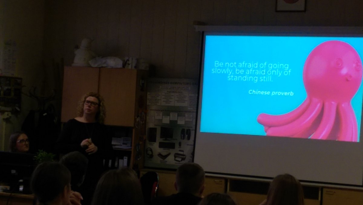Spalio 25 d. į mūsų gimnaziją atvykto Woman Go Tech dalyvės Dovilė Vilčiauskaitė ir Jurga Galinienė. Jie pasidalino patirtimi dirbant programavimo ir testavimo inžinerijos srityse bei savo keliu link šių profesijų.