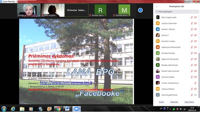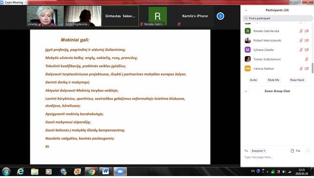 Gegužės 29 d. 10-tų klasių vadovės Žana Bogdevičienė ir Jolanta Andrukonienė organizavo online susitikimą savo auklėtiniams su Varėnos technologijos ir verslo mokyklos atstovu Gintautu Sakavičiumi.