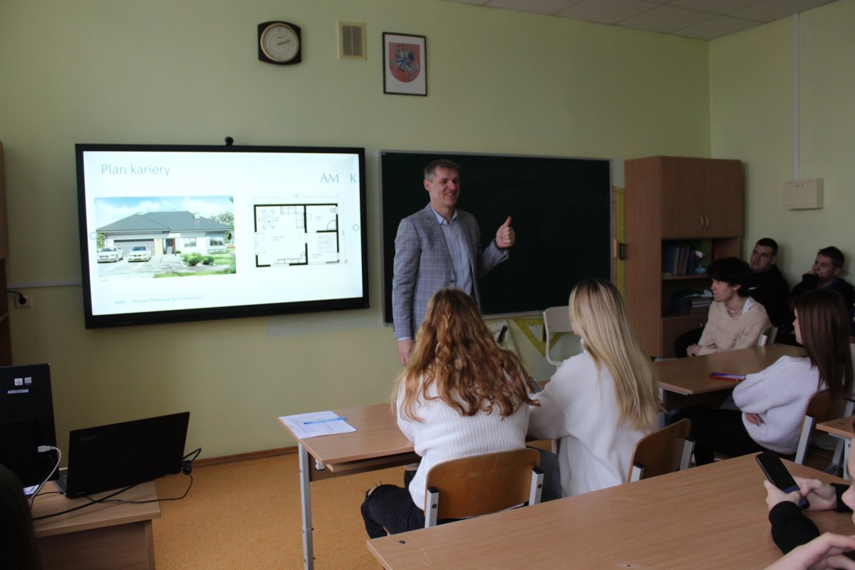 Šių metų lapkričio 18 d. mūsų gimnazijos IIG, IVG kl. mokiniai dalyvavo 3 valandų mokymuose tema „Mano ateities planai“. Mokymus vedė Valdemaras Chorostin, UAB „AM Konsultavimas“ direktorius.