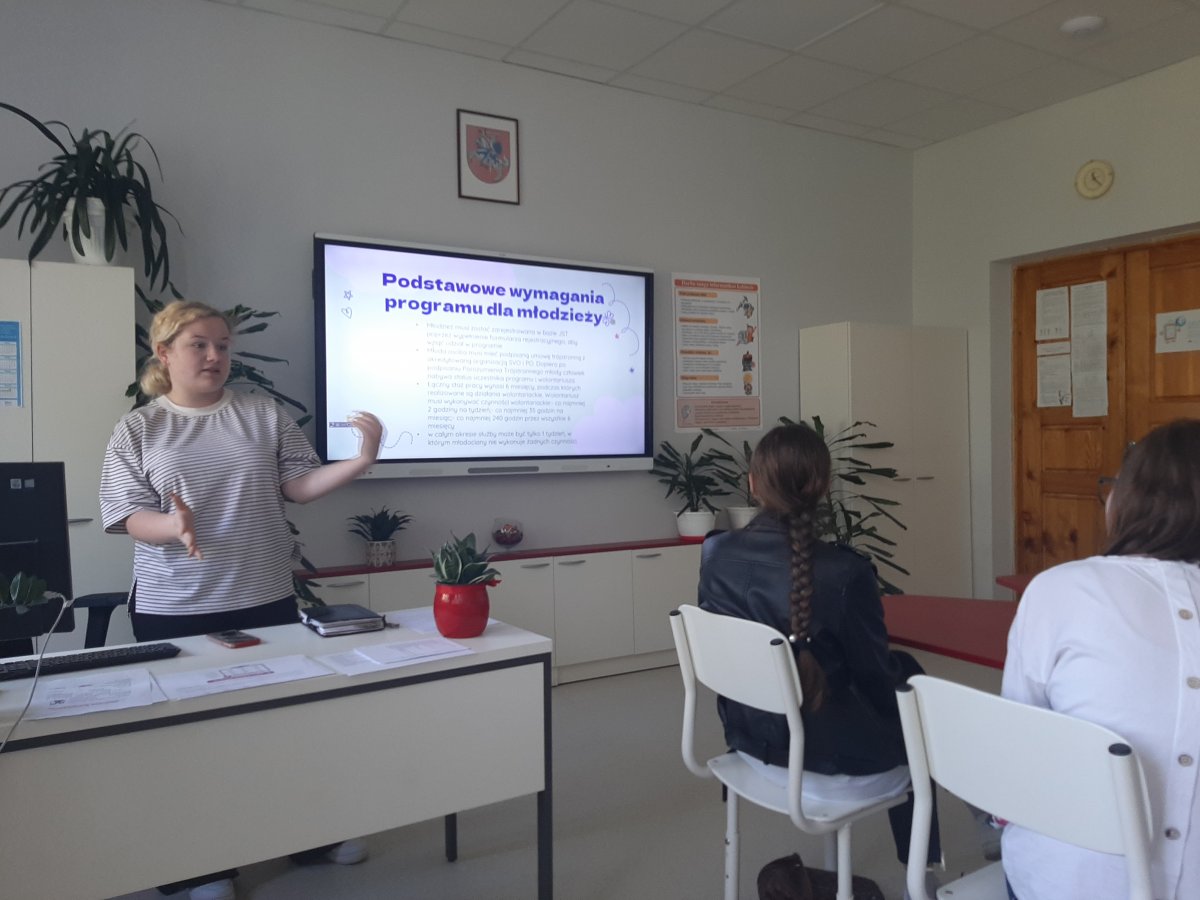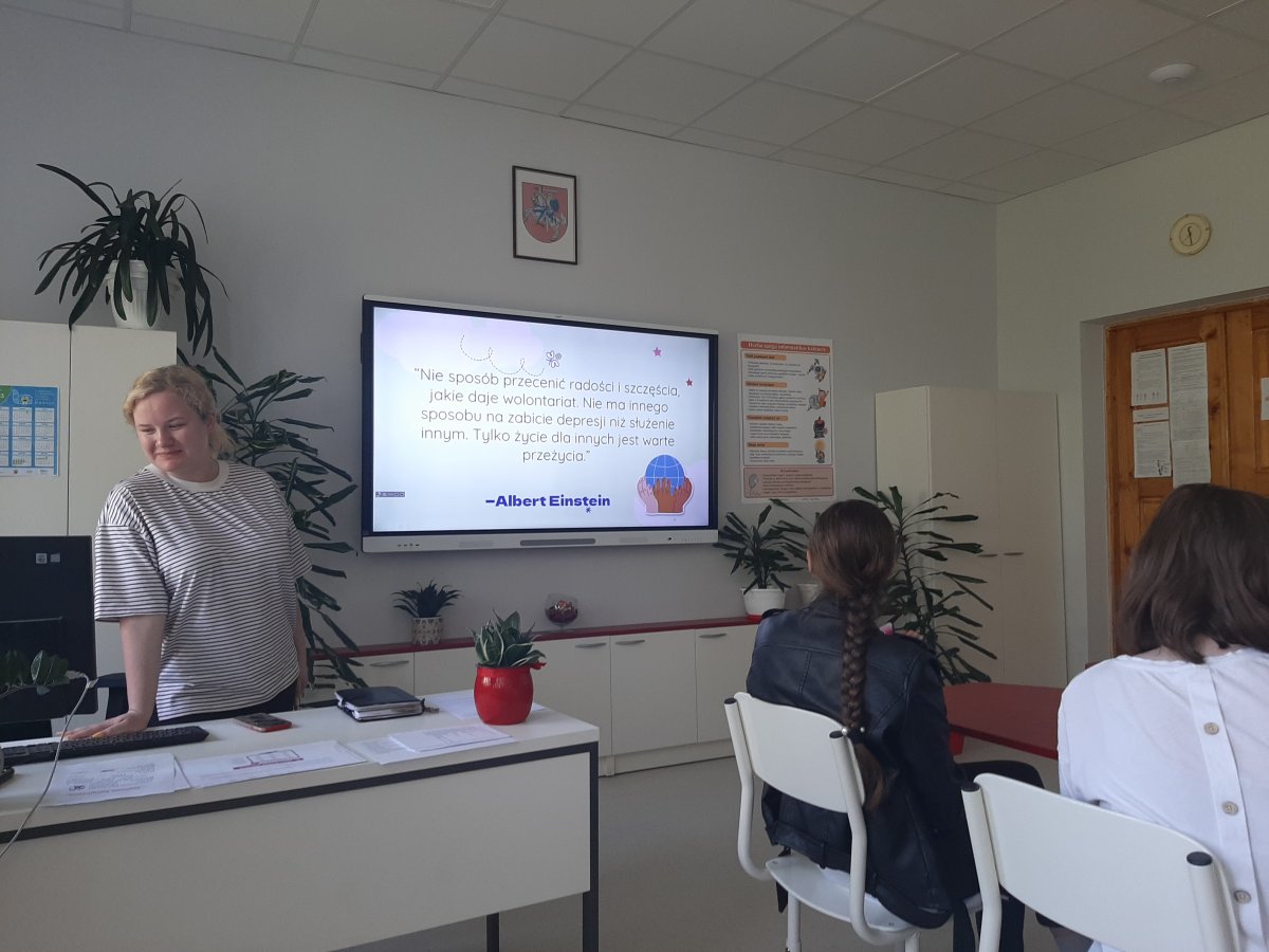 Birželio 1 d. klasės valandėlės metu Emilija Jusevič papasakojo klasiokams apie tai, kas yra savanorystė, kokios yra jos rūšys, sąlygos bei kodėl verta tapti savanoriu.