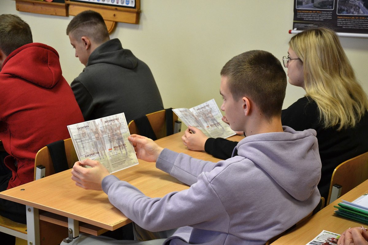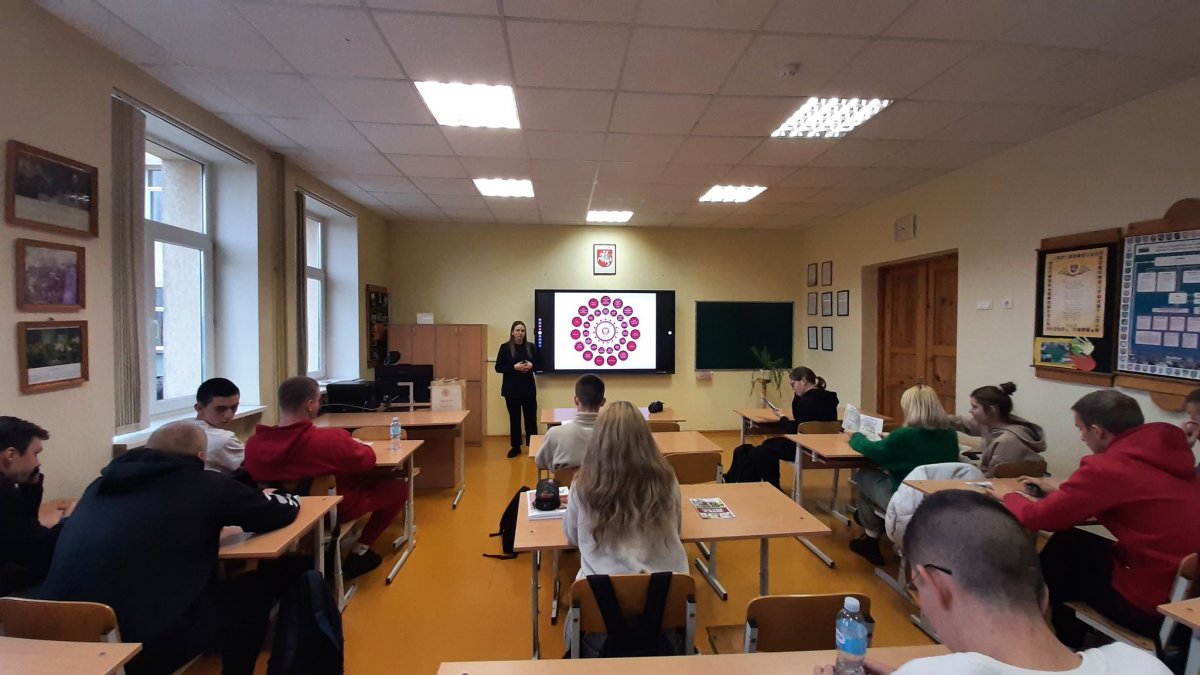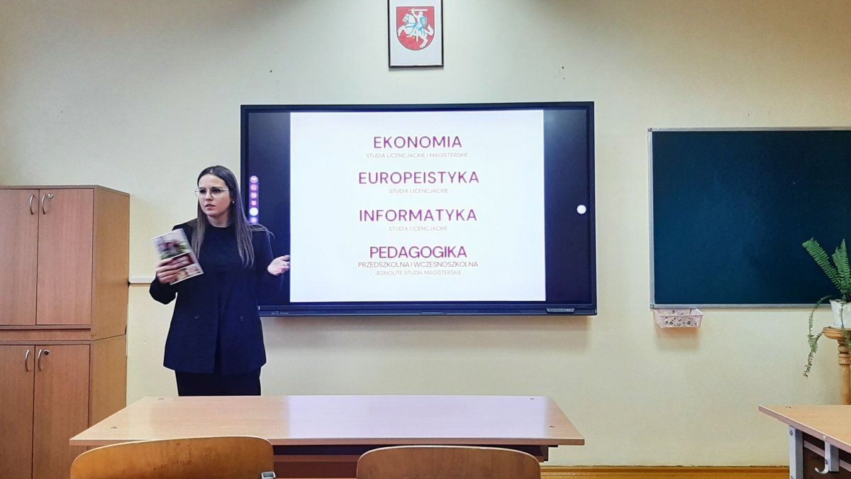 Lapkričio 18 d. mūsų gimnazijoje viešėjo Balstogės universiteto Vilniaus filialo atstovai. Susitikimo metu svečiai IIIG–IVG klasių mokiniams pristatė universiteto fakultetus ir stojimo sąlygas. Viešnia papasakojo apie tai, kad universitete yra daug papildomos veiklos. Buvo pateikta informacija apie ERASMUS+ mainus. Susitikimo metu mokiniai praturtino žinias karjeros planavimo srityje.